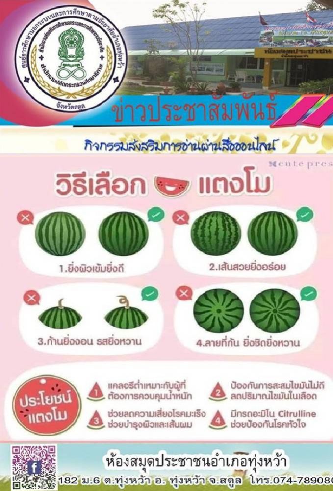 ห้องสมุดประชาชนอำเภอทุ่งหว้า ส่งเสริมการอ่านออนไลน์📚📖 \"วิธีเลือกแตงโม\"