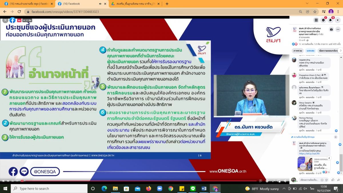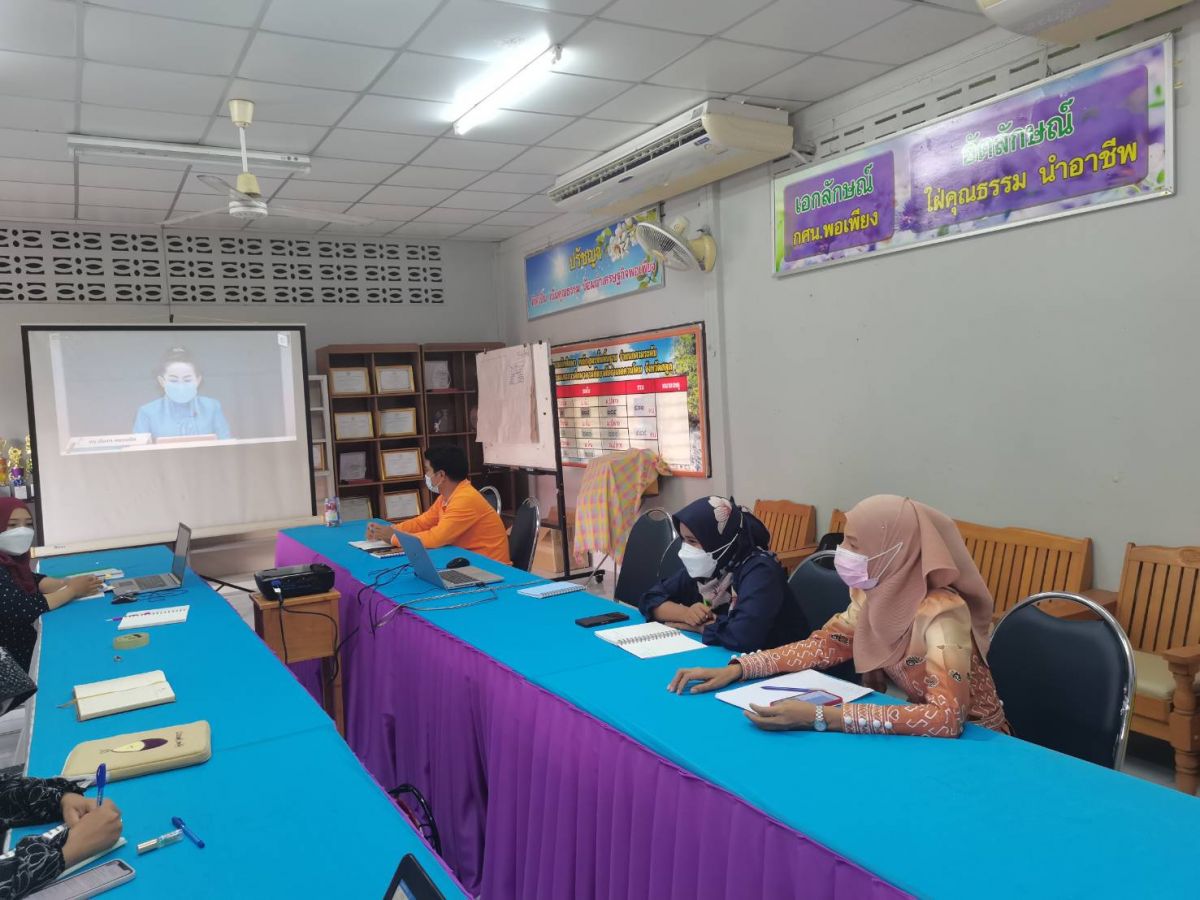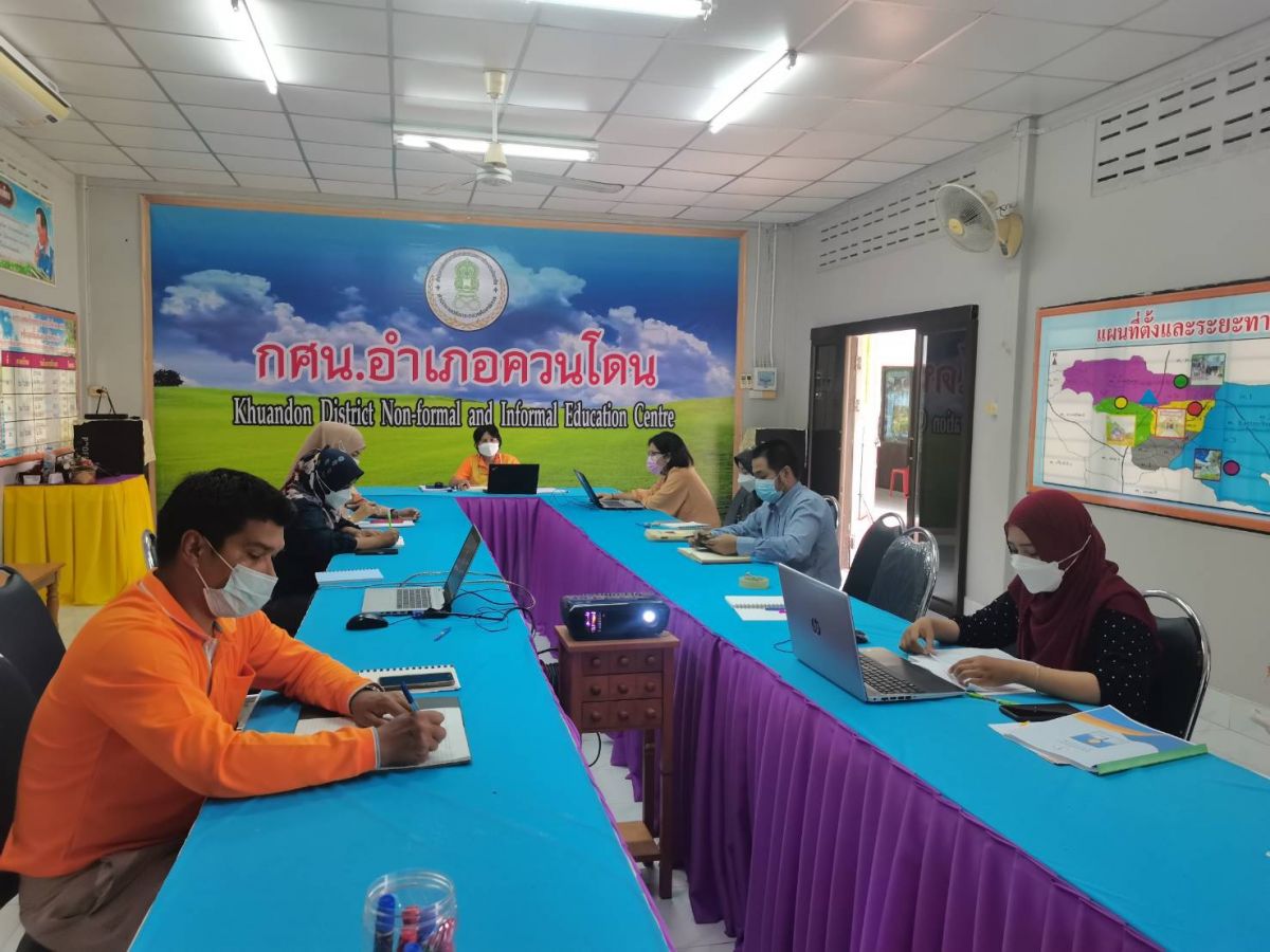 นางเนาวรัตน์ ศรีหมั่น ครู ชำนาญการ รักษาการในตำแหน่งผู้อำนวยการ กศน.อำเภอควนโดน พร้อมด้วยบุคลากรในสังกัด เข้าร่วมโครงการส่งเสริมสถานศึกษาและประสานความร่วมมือกับหน่วยงานต้นสังกัด เพื่อสร้างความรู้ความเข้าใจ เกี่ยวกับกรอบแนวทางรูปแบบ และวิธีการประกันคุณภาพภายนอกภายใต้สถานการณ์ COVID-19 ประจำปีงบประมาณ 2565 โดยร่วมชม Facebook Live การบรรยายหัวข้อ "แนวทางการประกันคุณภาพภายนอกภายใต้สถานการณ์ COVID-19 " วิทยากรโดย ดร.นันทา หงวนตัด รักษาการผู้อำนวยการ สมศ. รับชม ณ ห้องประชุม กศน.อำเภอควนโดน จังหวัดสตูล