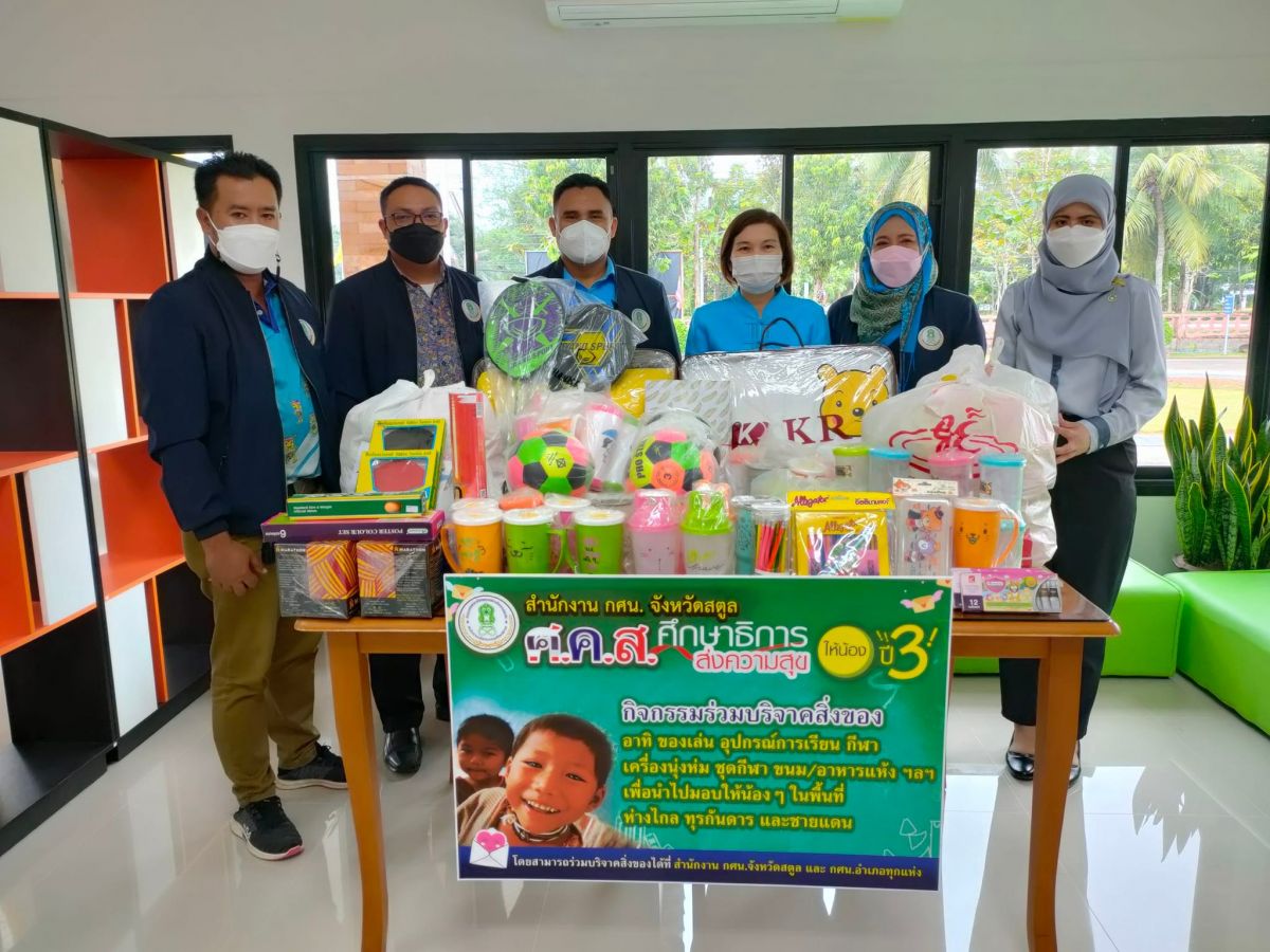 กศน.อำเภอทุ่งหว้า จังหวัดสตูล และคณะทีมงานกศน.อำเภอทุ่งหว้า มอบสิ่งของรับบริจาค กิจกรรม ศ.ค.ส ศึกษาธิการ ส่งความสุขให้น้อง ปี 3 เพื่อส่งต่อความรักความสุขจากพี่สู่น้องทั่วประเทศในห้วงวันขึ้นปีใหม่และในห้วงวันเด็กแห่งชาติ ประจำปี 2564 สู่เด็กและเยาวชน ในพื