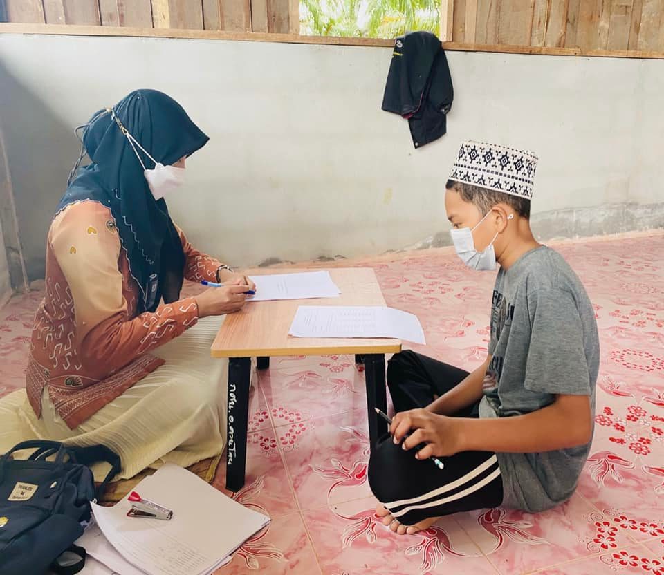 นางสาวอาฟีฟา อาลีมิง ครูอาสาสมัครฯ ประจำสถาบันศึกษาปอเนาะ ได้รับมอบหมายจาก นางเนาวรัตน์ ศรีหมั่น ครูชำนาญการ รักษาการในตำแหน่ง ผู้อำนวยการ กศน.อำเภอควนโดน ได้ดำเนินการประเมินระดับการรู้หนังสือของนักศึกษา กศน. (การอ่านออกเขียนได้) ระดับประถมศึกษา ภาคเรียนที่ 2 ปีการศึกษา 2564 เพื่อเป็น การส่งเสริมการอ่าน - การเขียนภาษาไทยของนักศึกษา กศน. และนำผลการประเมินมาพัฒนาการอ่านและเขียนภาษาไทยของนักศึกษา กศน. ให้มีประสิทธิภาพต่อไป โดยกระบวนการดำเนินการประเมินการรู้หนังสือเป็นไปตามแนวปฏิบัติการควบคุมและป้องกันการแพร่ระบาดของโรคติดเชื้อไวรัสโคโรน่า 2019 ณ สถาบันศึกษาปอเนาะท่องจำอัลกุรอานอัลฟิรเดาส์ ตำบลควนสตอ อำเภอควนโดน