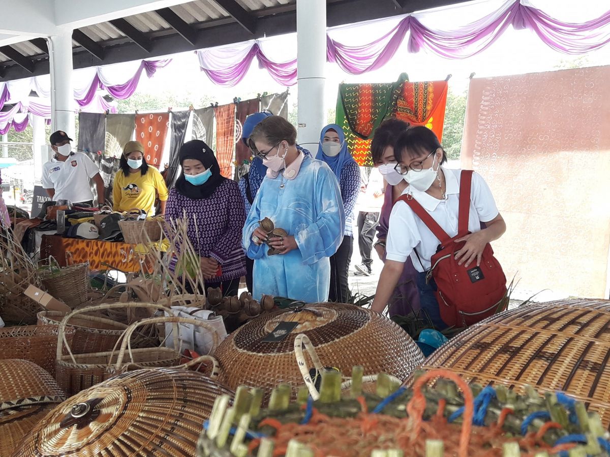 นายอาดำ ลิงาลาห์ ผู้อำนวยการศูนย์ กศน.อำเภอทุ่งหว้า จังหวัดสตูล มอบหมายให้นางวิชุตา เกษม ครูกศน.ตำบลร่วมต้อนรับ หม่อมหลวงสราลี กิติยากร และคณะ เยี่ยมชมผลิตภัณฑ์ชุมชนทุ่งหว้า