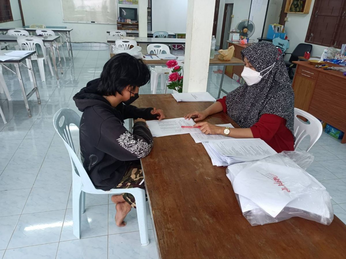 ครูอาสาฯ ตำบลควนโพธิ์ ประเมินระดับการรู้หนังสือของนักศึกษา กศน. ประจำภาคเรียนที่ 2 ปีการศึกษา 2564