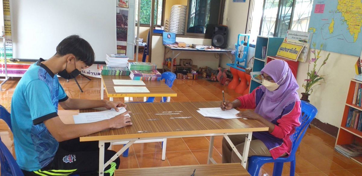 นางสาววิภานันท์ พุทธนุกูล ผู้อำนวยการ กศน.อำเภอเมืองสตูล มอบหมายให้ ครู อาสาสมัคร กศน.ตำบลเจ๊ะบิลัง ประเมินระดับการรู้หนังสือของนักศึกษา ระดับมัธยมศึกษาตอนต้น ประจำภาคเรียนที่ 2 ปีการศึกษา 2564