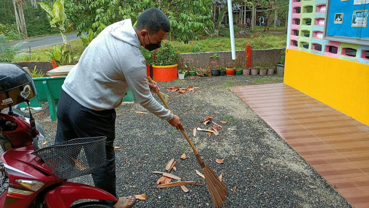 นางสาวฮาบีบะห์ เจ๊ะสมอเจ๊ะ ครู กศน.ตำบลควนโดน และนายอนันต์ ลัสมาน ครูอาสาสมัคร กศน.ตำบลควนโดนได้รับมอบหมายจากนางเนาวรัตน์ ศรีหมั่นครูชำนาญการ รักษาการในตำแหน่ง ผอ.กศน.อำเภอควนโดน ครูและนักศึกษาร่วมกันพัฒนากศน.ตำบลควนโดน และทำความสะอาดในพื้นที่ กศน.ตำบล เพื่อให้เกิดความสะอาด ร่มรื่น สวยงาม โดยการปฏิบัติครั้งนี้เป็นไปตามแนวปฏิบัติการควบคุมและป้องกันการแพร่ระบาดของโรคติดเชื้อไวรัสโคโรน่า 2019 ณ กศน.ตำบลควนโดน อำเภอควนโดน จังหวัดสตูล