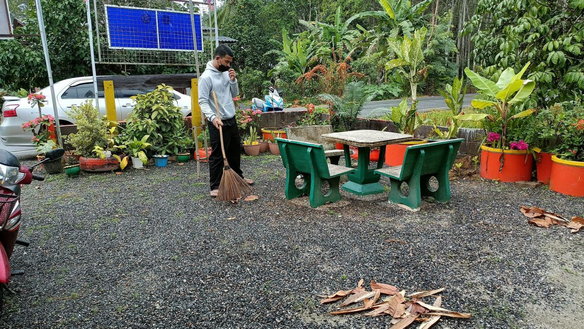 นักศึกษา กศน.ตำบลควนโดน ร่วมพัฒนากศน.ตำบล และทำความสะอาดในพื้นที่กศน.ตำบล วันที่ 21 ธันวาคม 2564