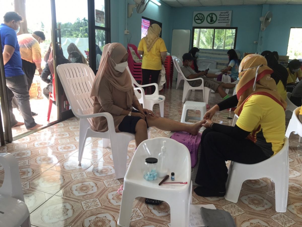 นายอาดำ ลิงาลาห์ ผู้อำนวยการศูนย์ กศน.อำเภอทุ่งหว้า จังหวัดสตูล มอบหมายให้นางวิชุตา เกษม ครูกศน.ตำบล เข้าร่วมกิจกรรมนวดฝ่าเท้าของกลุ่มสมุนไพรทักษอร