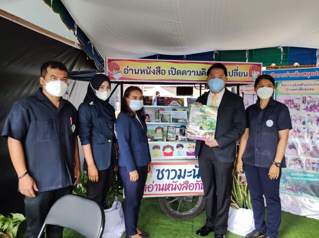 นางสาวจตุพร ทหารไทย ครูชำนาญการ รักษาการในตำแหน่ง ผู้อำนวยการ กศน.อำเภอมะนัง จังหวัดสตูล พร้อมด้วยบุคลากรในสังกัด ร่วมต้อนรับ นายสุพจน์ รอดเรือง ณ หนองคาย รองผู้ว่าราชการจังหวัดสตูล ในการเยี่ยมชมการจัดนิทรรศการ งานการศึกษาตามอัธยาศัย รถมินิโมบายส่งเสริมการอ่านเคลื่อนที่ ของ กศน.อำเภอมะนัง ณ สำนักงาน กศน.จังหวัดสตูล