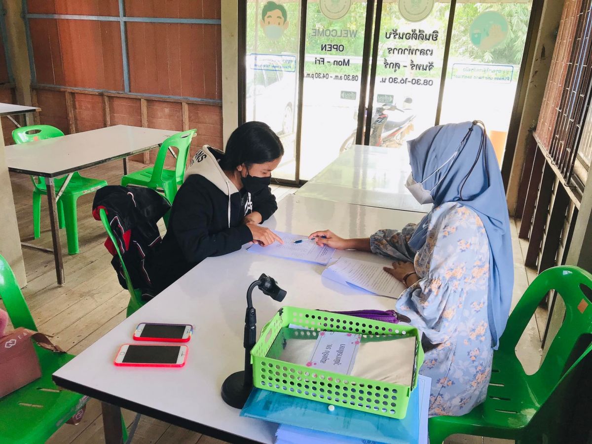 วันที่ 17 ธันวาคม 2564 นางสาวกูรอม๊ะ ราเหม ครูศูนย์การเรียนชุมชนบ้านปีใหญ่ประเมินการรู้หนังสือของนักศึกษา