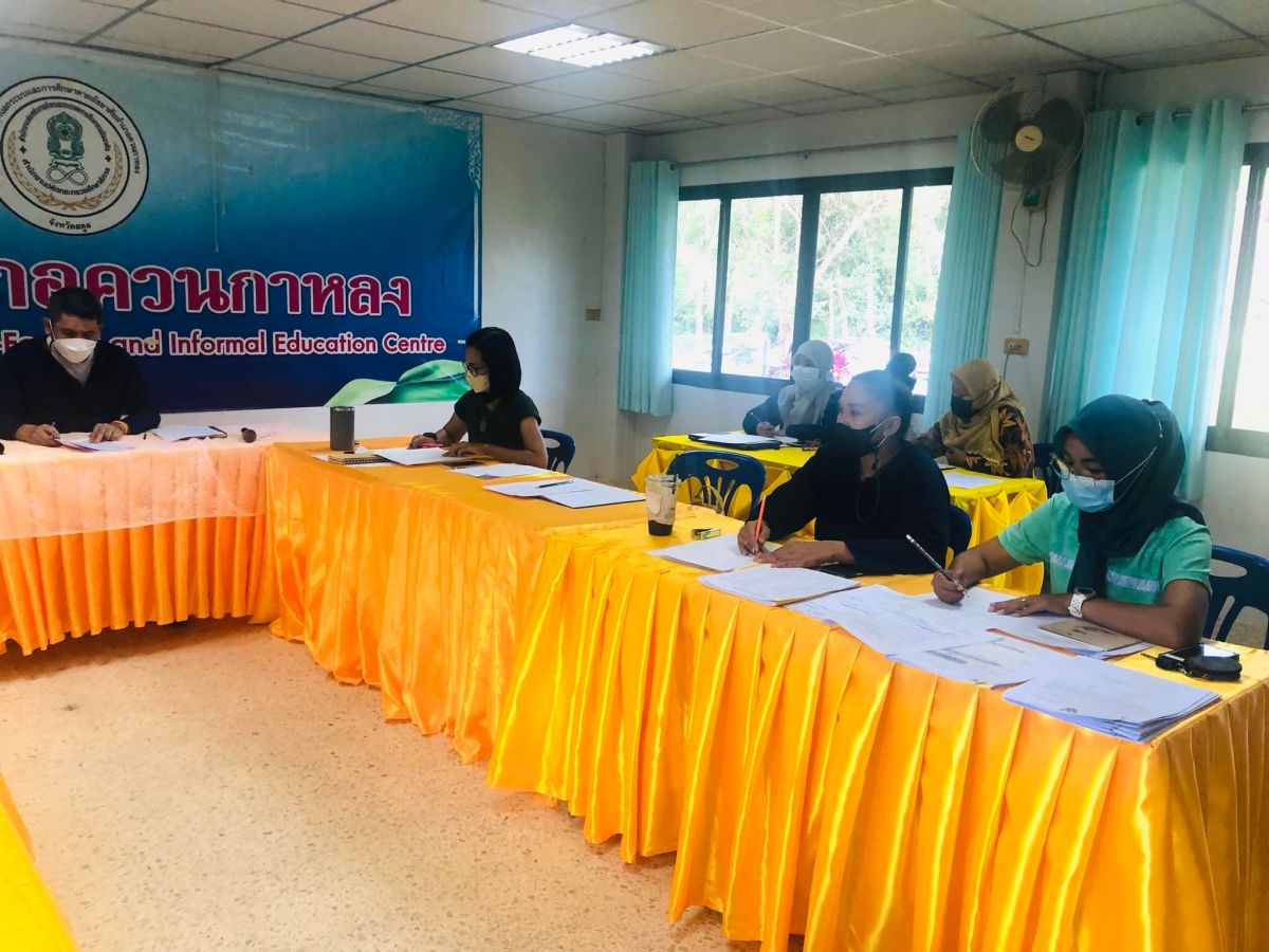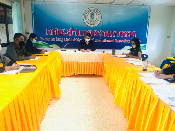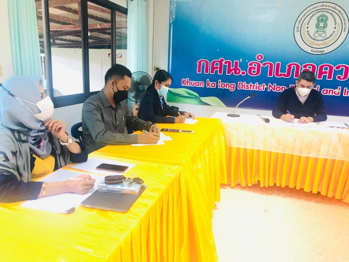 นายทวีศักดิ์ แซ่เจน ครูชำนาญการ รักษาการในตำแหน่งผู้อำนวยการศูนย์ กศน.อำเภอควนกาหลง ประชุมบุคลากรเพื่อติดตามการดำเนินงานกศน.ให้เป็นไปในทิศทางเดียวกันโดยกระบวนการดำเนินการจัดกิจกรรมเป็นไปตามแนวปฏิบัติการควบคุมและป้องกันการแพร่ระบาดของโรคติดเชื้อไวรัสโคโรน่า ๒๐๑๙
