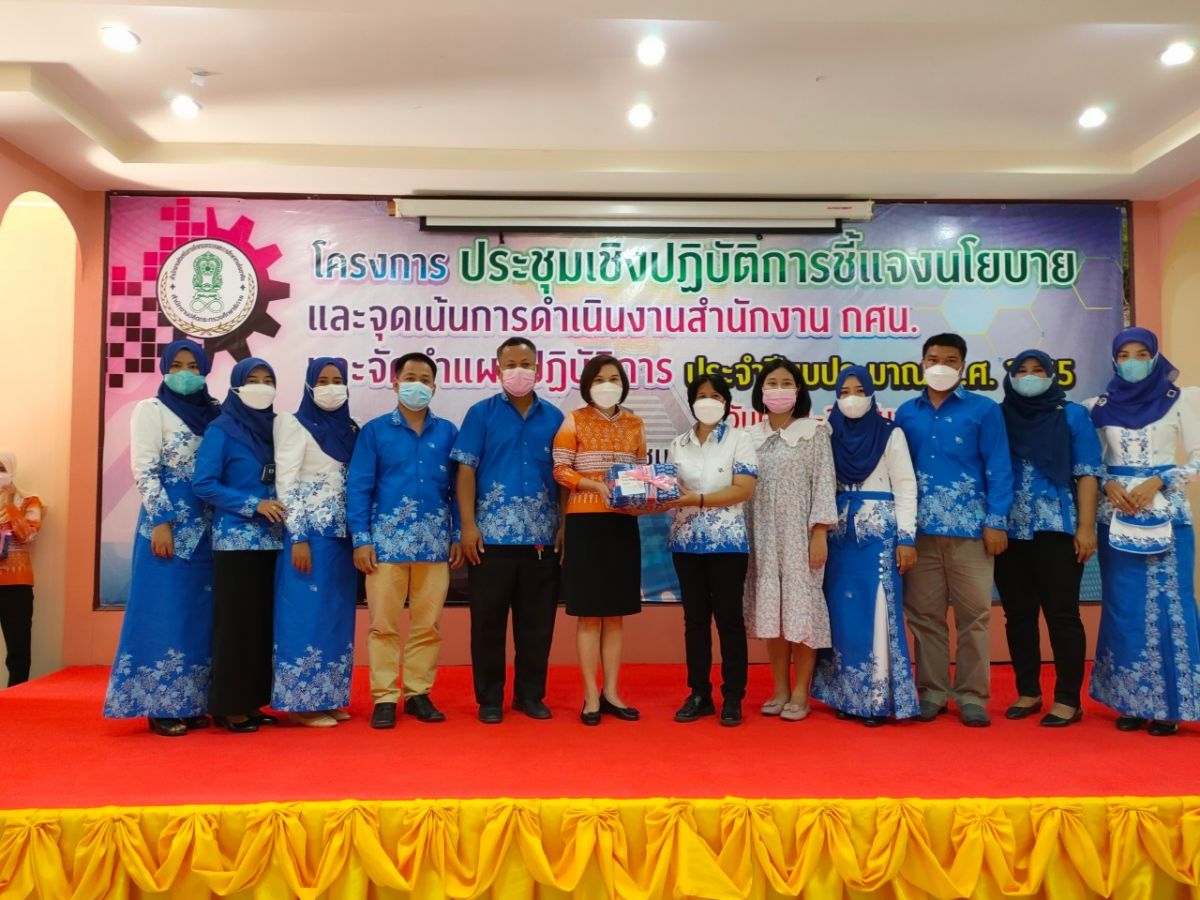 นางเนาวรัตน์ ศรีหมั่น ครู ชำนาญการ รักษาการในตำแหน่งผู้อำนวยการ กศน.อำเภอควนโดนและบุคลากรในสังกัด รับมอบผ้าลายขอเจ้าฟ้าสิริวัณณวรีฯ จากนางสาวนราวรรณ เวชธรรม ผู้อำนวยการ สำนักงาน กศน.จังหวัดสตูล เพื่อสร้างขวัญและกำลังใจ และร่วมส่งเสริมให้บุคลลากรแต่งกายด้วยผ้าลายพระราชทาน "ผ้าลายขอเจ้าฟ้าสิริวัณณวรีฯ" และผ้าพื้นถิ่นในวันปฏิบัติราชการอย่างน้อยสัปดาห์ละ 1 วัน หรือในโอกาส อื่นๆ ที่เหมาะสม ณ ห้องประชุมพญากาหลง สำนักงาน กศน.จังหวัดสตูล