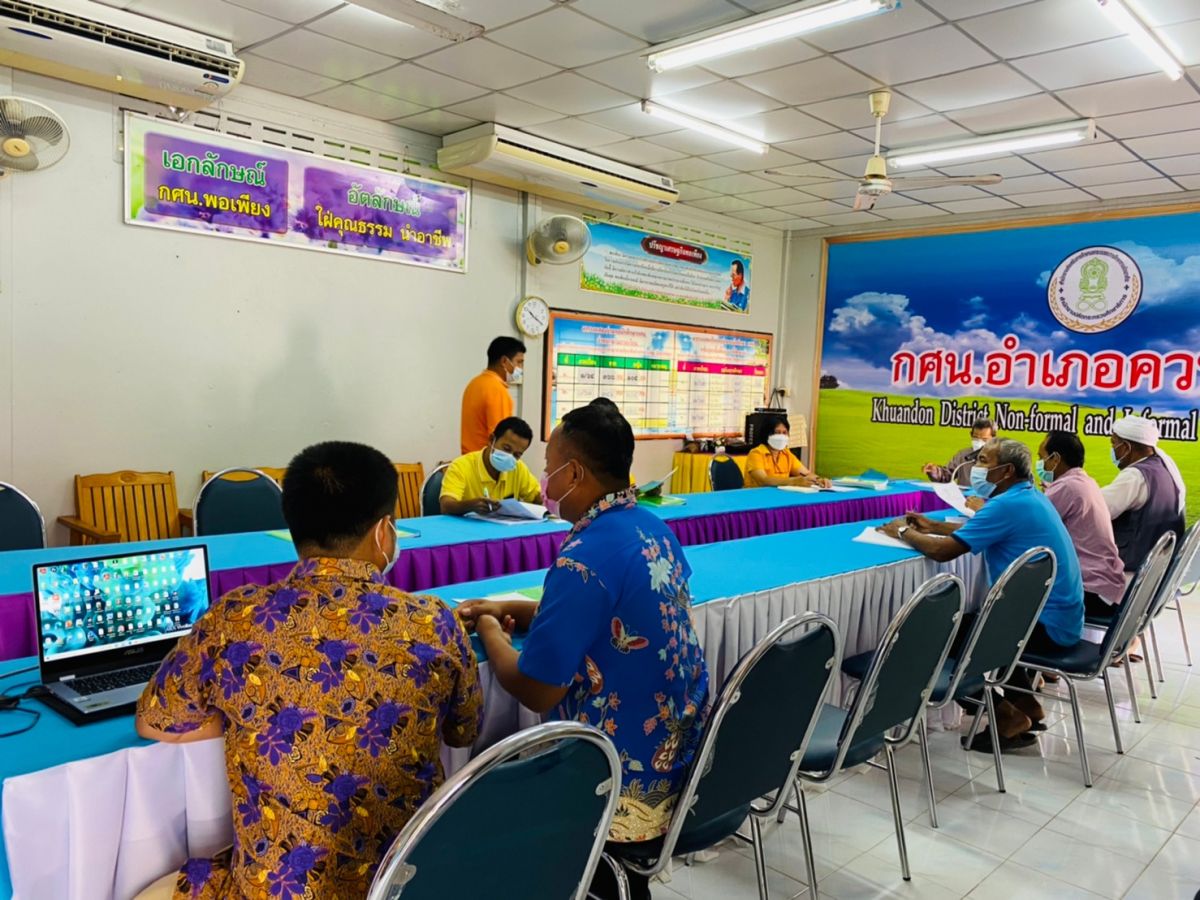 นางเนาวรัตน์ ศรีหมั่น ครู ชำนาญการ รักษาการในตำแหน่งผู้อำนวยการ กศน.อำเภอควนโดน จัดประชุมกรรมการสถานศึกษา เพื่อรายงานผลการดำเนินงาน ประจำปีงบประมาณ 2564 แผนดำเนินงานไตรมาสที่ 1-2 ประจำปีงบประมาณ 2565 ขอความเห็นแผนพัฒนา คุณภาพผู้เรียน และพิจารณาการเปิดเรียน แบบ on site ในภาคเรียนที่ 2 ปีการศึกษา 2564 โดยมี นายก็หลัด บินหมาน เป็นประธานและดำเนินการประชุม ณ กศน.อำเภอควนโดน จังหวัดสตูล