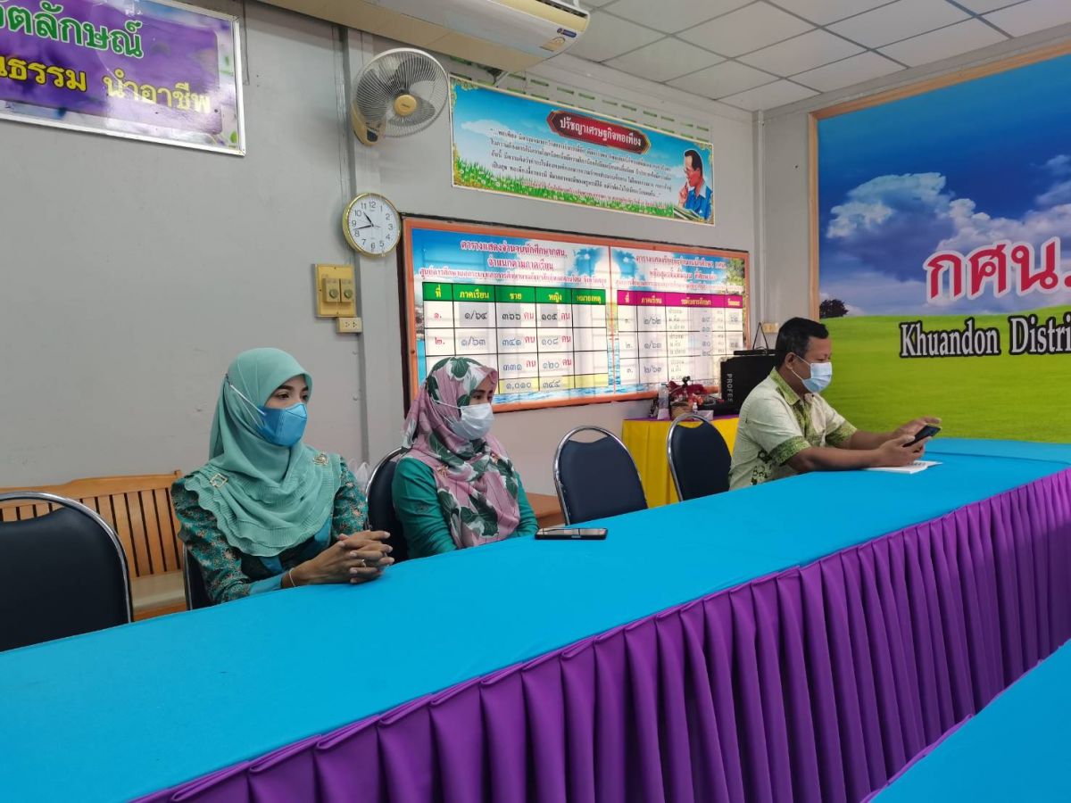 นางสาวสุนีย์ ไมมะหาด ครู กศน.ตำบลควนสตอ และนางรัตติยา ทรุพงษ์ ครูอาสาสมัคร กศน.ตำบลควนโดน พร้อมด้วยบุคลากรในสังกัดสถานศึกษา เข้าร่วมประชุมรายงานผลการปฏิบัติงาน ประจำสัปดาห์ และการเตรียมความพร้อมในการจัดกิจกรรมโครงการจิตอาสาพระราชทานระดับการศึกษา ณ ห้องประชุม กศน.อำเภอควนโดน จังหวัดสตูล โดยมีนางเนาวรัตน์ ศรีหมั่น ครู ชำนาญการ รักษาการในตำแหน่งผู้อำนวยการ กศน.อำเภอควนโดน เป็นประธานและดำเนินการประชุม