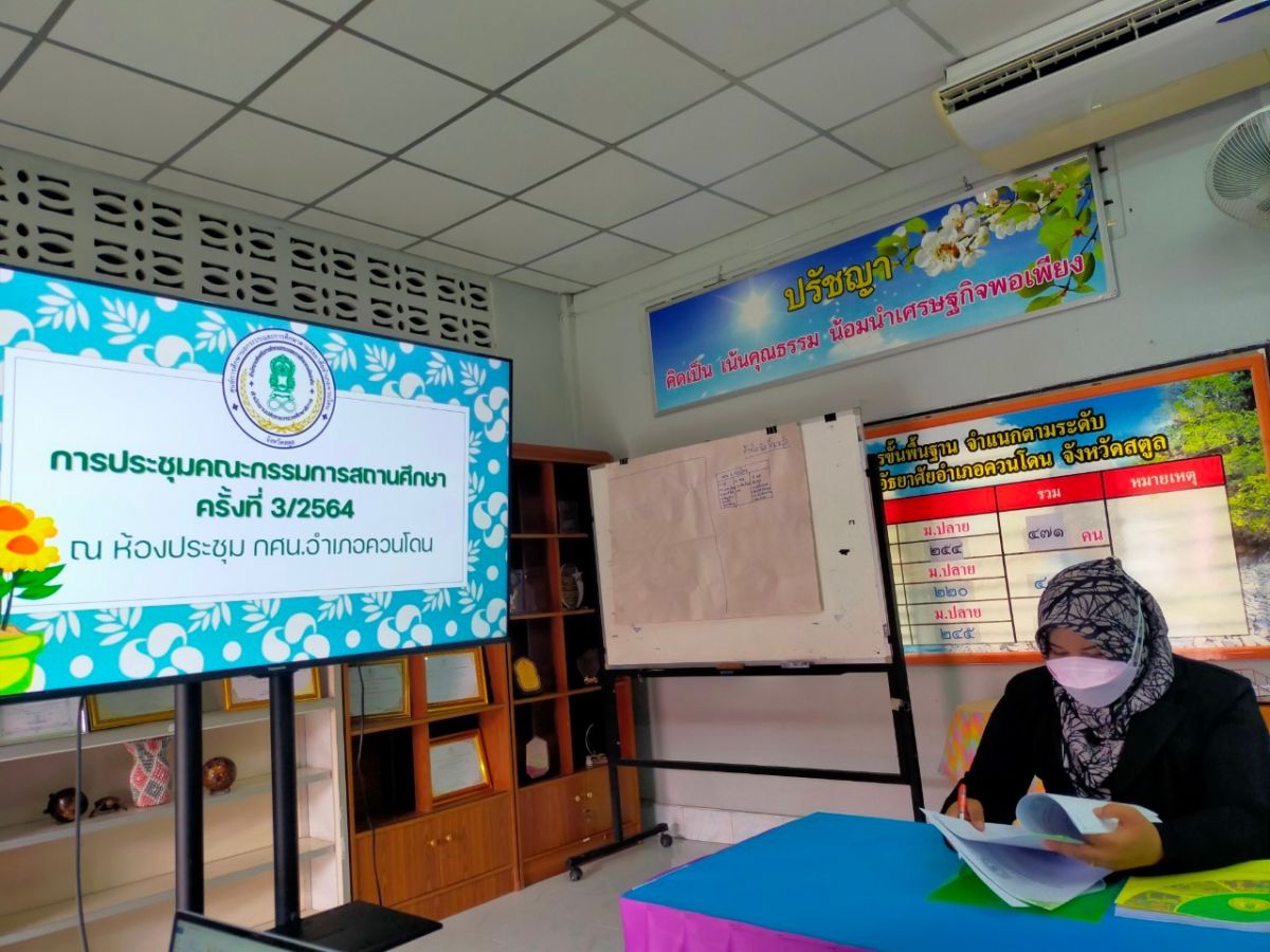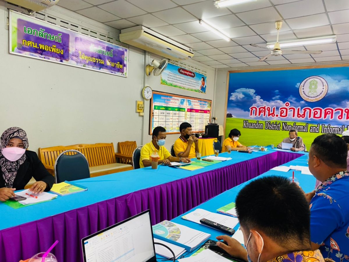 นางวนิดา รักเมือง ครู กศน.ตำบลวังประจัน ได้รับมอบหมายจาก นางเนาวรัตน์ ศรีหมั่น ครู ชำนาญการ รักษาการในตำแหน่งผู้อำนวยการ กศน.อำเภอควนโดน เป็นตัวแทนครูเข้าร่วมประชุมกรรมการสถานศึกษา เพื่อรายงานผลการดำเนินงาน ประจำปีงบประมาณ 2564 แผนดำเนินงานไตรมาสที่ 1-2 ประจำปีงบประมาณ 2565 ขอความเห็นแผนพัฒนา คุณภาพผู้เรียน และพิจารณาการเปิดเรียน แบบ on site ในภาคเรียนที่ 2 ปีการศึกษา 2564 โดยมี นายก็หลัด บินหมาน เป็นประธานและดำเนินการประชุม ณ กศน.อำเภอควนโดน จังหวัดสตูล