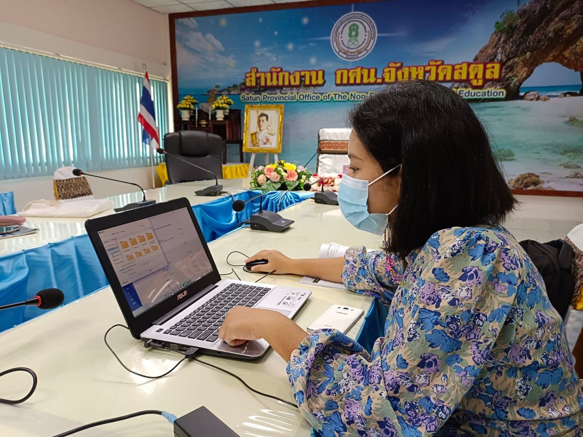 นางสาวจรรยารัตน์ พูลสวัสดิ์ ครูผู้ชวย กศน.อำเภอควนโดน ได้รับมอบหมาย จากนางเนารัตน์ ศรีหมั่น ครูชำนาญการ รักษาการ ในตำแหน่ง ผู้อำนวยการ กศน.อำเภอควนโดน เข้าร่วมโครงการประชุมเชิงปฏิบัติการจัดทำต้นฉบับข้อสอบกลางภาคเรียนที่ 2 ปีการศึกษา 2564 หลักสูตรการศึกษานอกระบบระดับการศึกษาขั้นพื้นฐาน พุทธศักราช 2551 ณ ห้องประชุมพิกุลทอง สำนักงาน กศน.จังหวัดสตูล
