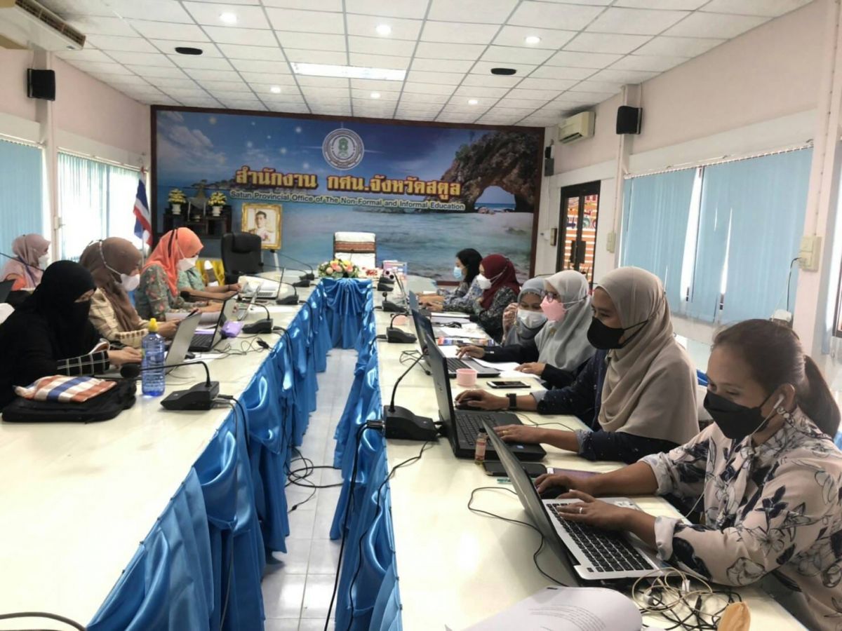 นางเนาวรัตน์ ศรีหมั่น ครู ชำนาญการ รักษาการในตำแหน่งผู้อำนวยการ กศน.อำเภอควนโดน จังหวัดสตูล มอบหมายให้ นางสาวจรรยารัตน์ พูลสวัสดิ์ ครูผู้ช่วย และนางสาวนุรวาตี หมัดสกุล ครู กศน.ตำบลย่านซื่อเข้าร่วมโครงการประชุมเชิงปฏิบัติการจัดทำข้อสอบกลางภาคเรียนที่ 2 ปีการศึกษา 2564 หลักสูตรการศึกษานอกระบบระดับการศึกษาขั้นพื้นฐานพุทธศักราช 2551 โดยมีครูผู้สอน และเจ้าหน้าที่งานการศึกษานอกระบบ ร่วมประชุมอย่างพร้อมเพรียงกัน ทั้งนี้การดำเนินโครงเป็นไปตามมาตรการป้องกันการแพร่ระบาดของโรคโควิด-19 ณ ห้องประชุมพิกุลทอง สำนักงาน กศน.จังหวัดสตูล