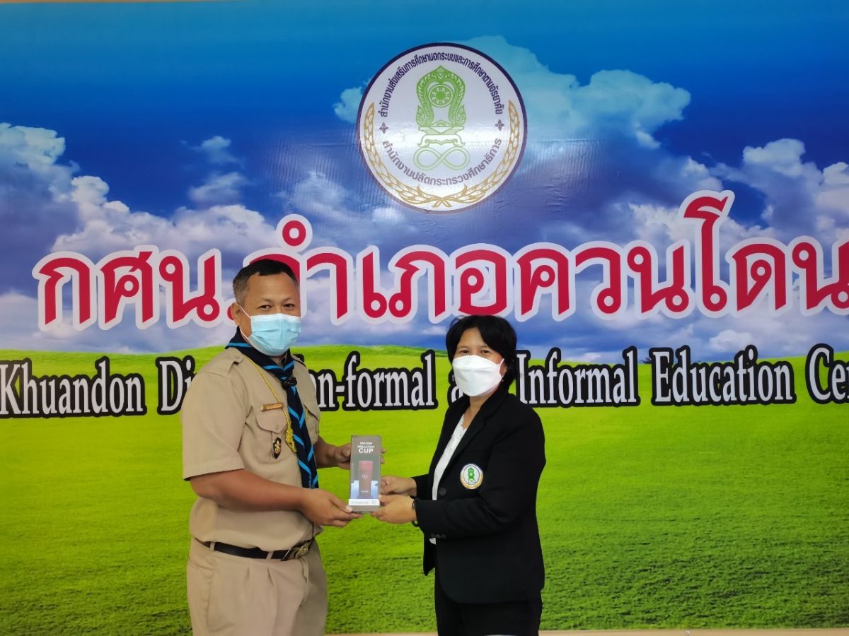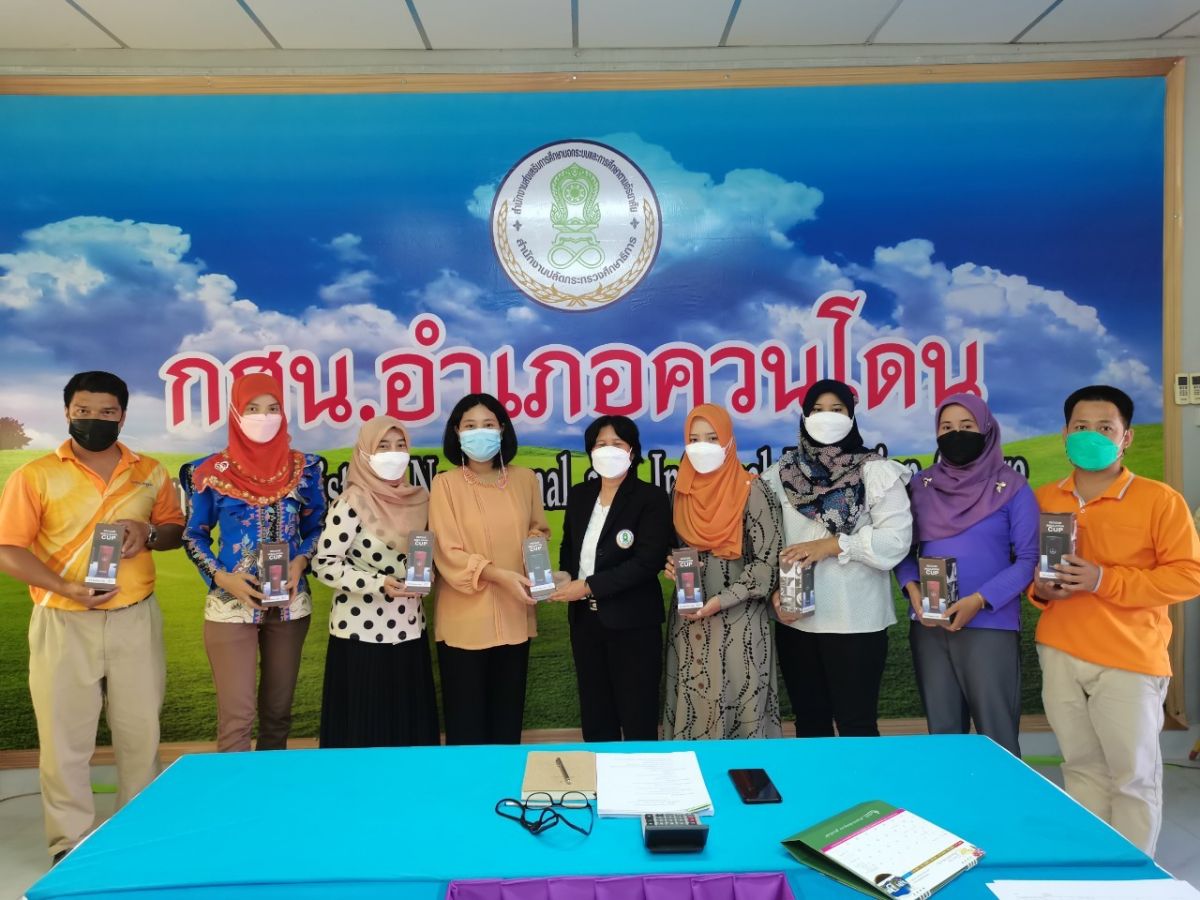 นางเนาวรัตน์ ศรีหมั่น ครูชำนาญการ รักษาการในตำแหน่ง ผู้อำนวยการ กศน.อำเภอควนโดน จังหวัดสตูล มอบของขวัญปีใหม่ ให้กับบุคลากรในสังกัดสถานศึกษา ในวารดิถีขึ้นปีใหม่ พุทธศักราช 2565 เพื่อเป็นขวัญและกำลังใจในการปฏิบัติหน้าที่ของบุคลากรในการปฏิบัติงานต่อไป ณ ห้องประชุม กศน.อำเภอควนโดน จังหวัดสตูล