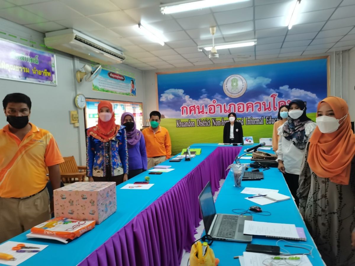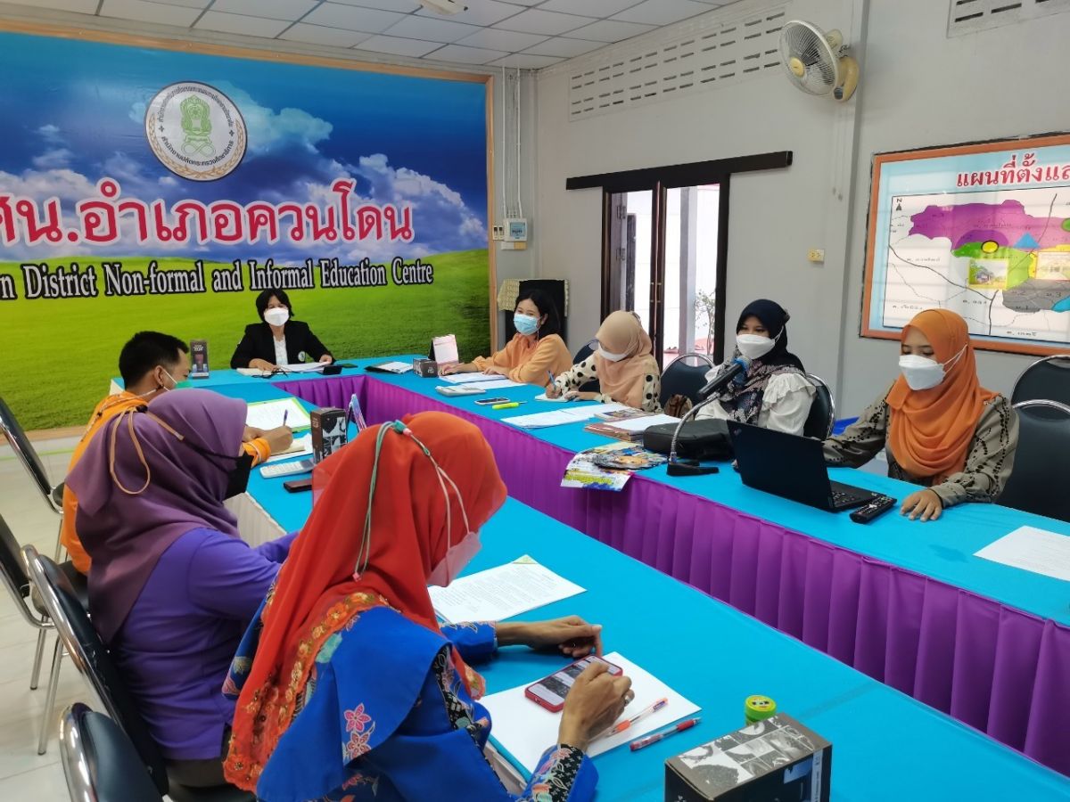 นางสาวสุนีย์ ไมมะหาด ครูกศน.ตำบลควนสตอ พร้อมด้วยด้วยบุคลากร กศน.อำเภอควนโดน เข้าร่วมประชุมบุคลากรในสังกัดสถานศึกษาประจำสัปดาห์ เพื่อรับทราบนโยบายที่สำคัญของรัฐบาล และหารือข้อราชการที่สำคัญของสำนักงาน กศน ติดตามความคืบหน้าในการจัดกิจกรรมลูกเสือจิตอาสา และการจัดกิจกรรมงานการศึกษาต่อเนื่อง ในการดำเนินการประชุมครั้งนี้เป็นไปตามมาตรการป้องกันการแพร่ระบาดของโรคติดเชื้อไวรัสโคโรนา 2019 อย่างเคร่งครัด ณ ห้องประชุม กศน.อำเภอควนโดน จังหวัดสตูล โดยมีนางเนาวรัตน์ ศรีหมั่น ครู ชำนาญการ รักษาการในตำแหน่ง ผู้อำนวยการ กศน.อำเภอควนโดน จังหวัดสตูล เป็นประธานและดำเนินการประชุม