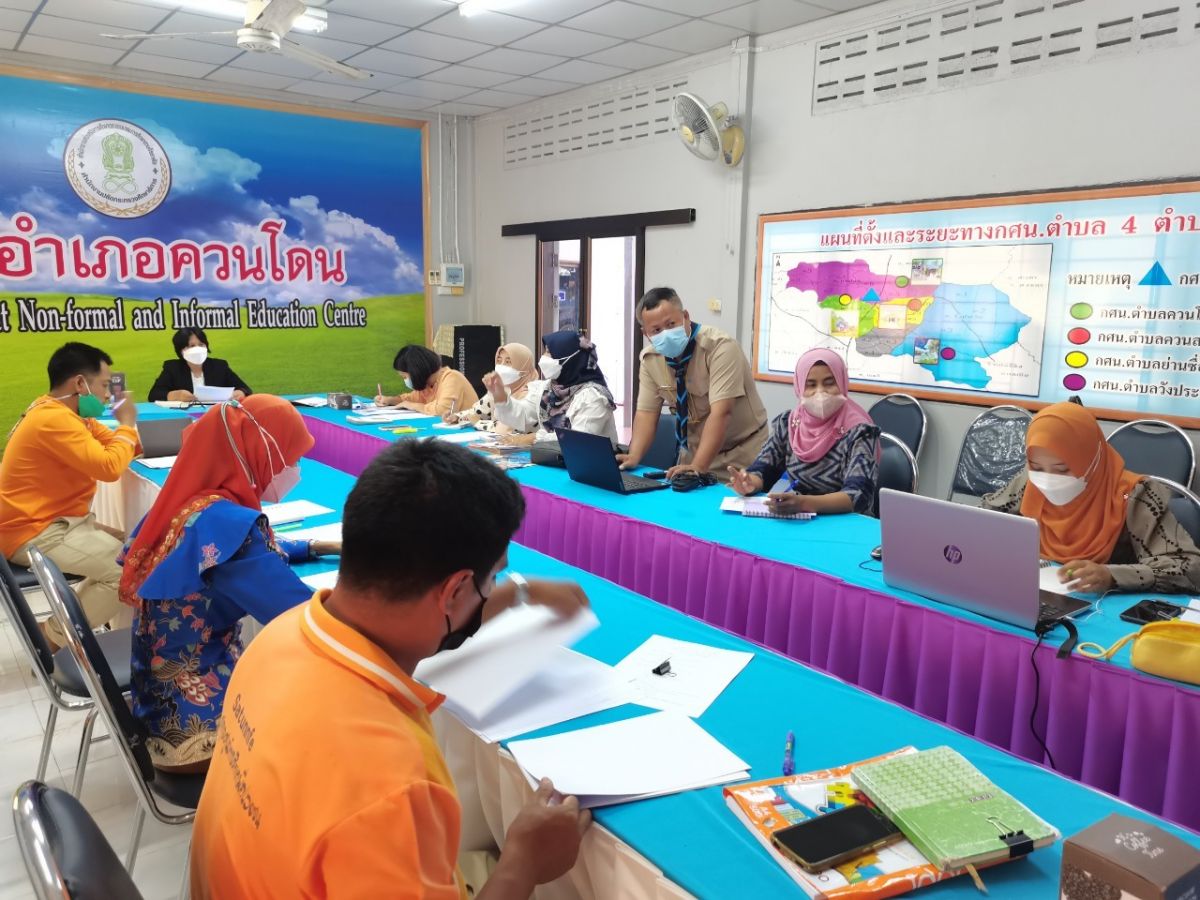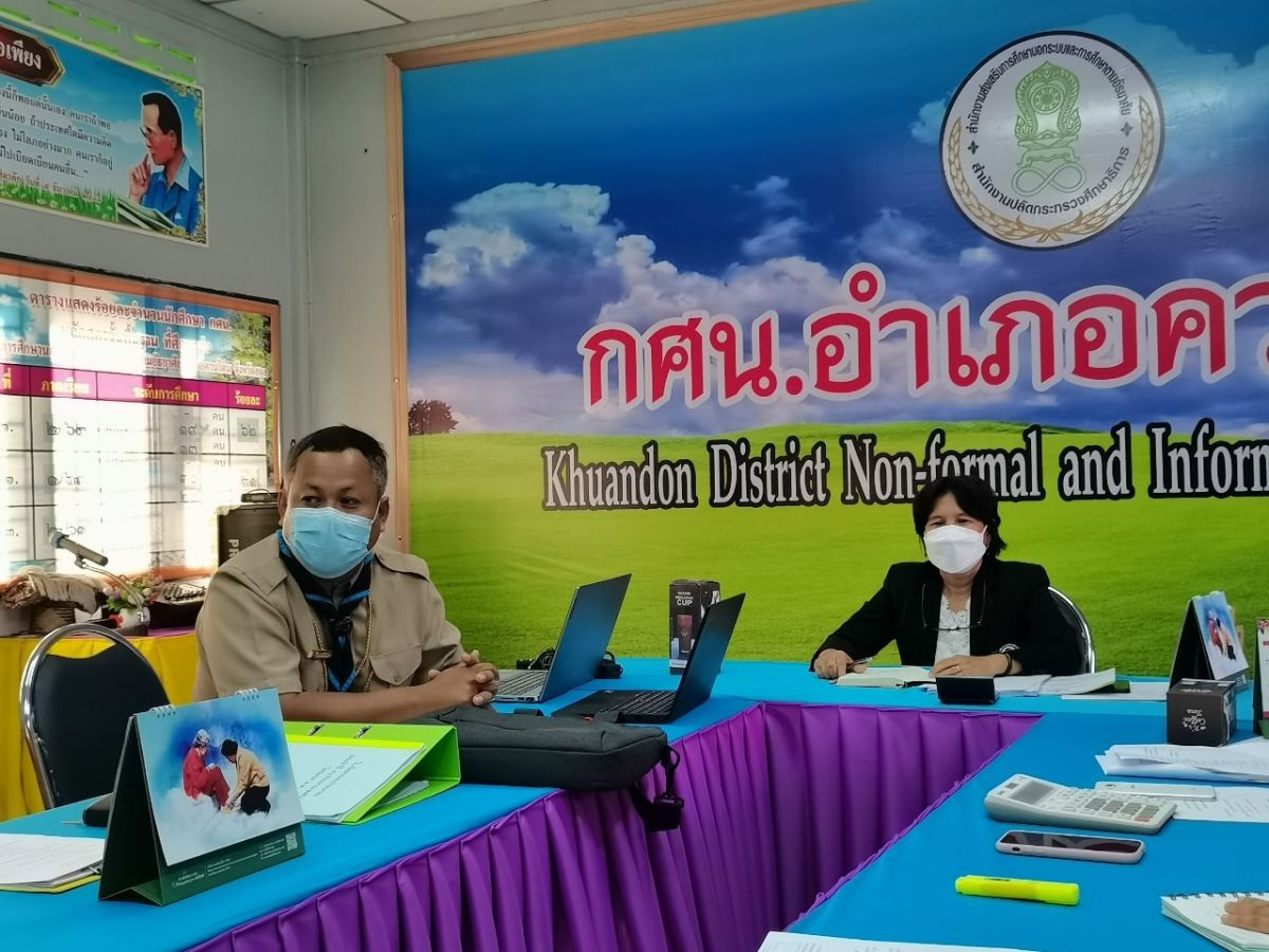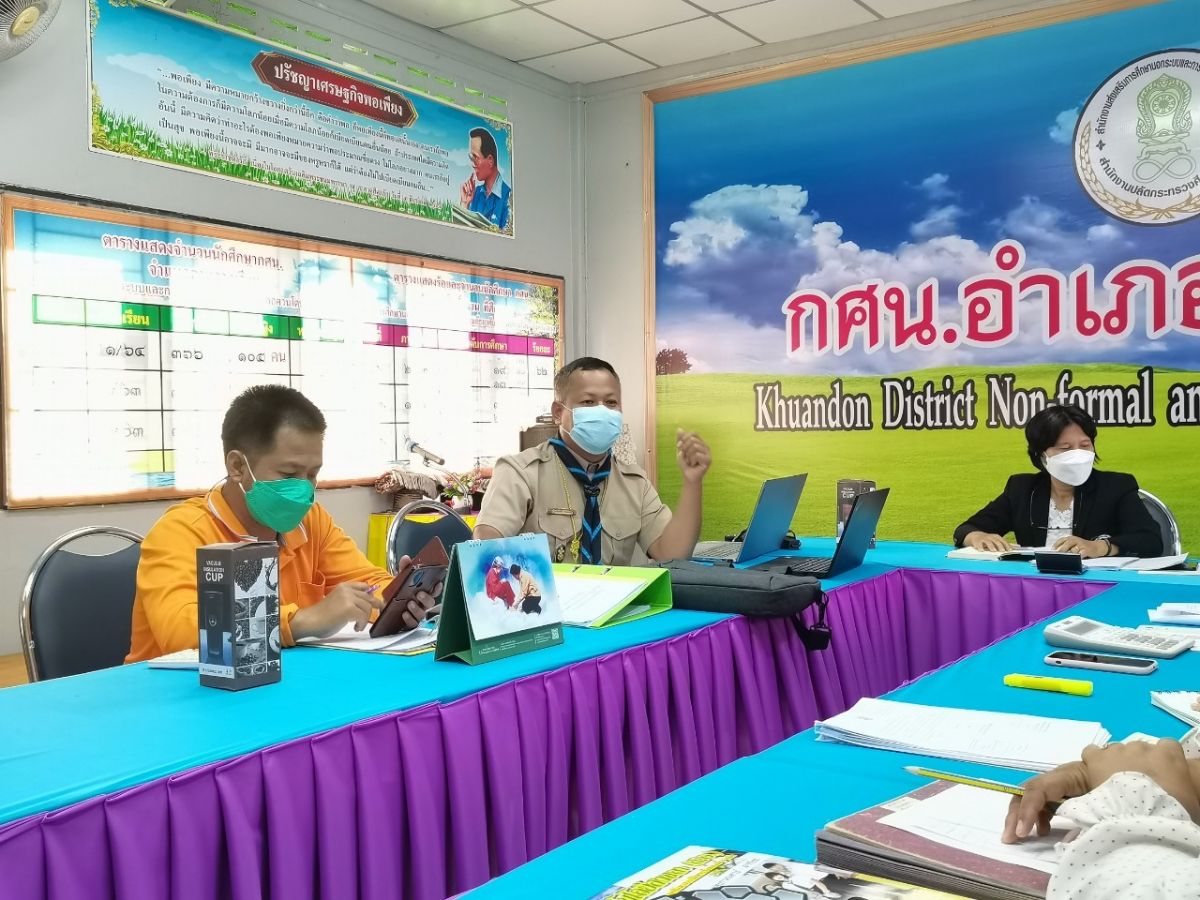 นายเกษมศักดิ์ ไชยพิทักษ์ บรรณารักษ์ ห้องสมุดประชาขนอำเภอควนโดน พร้อมด้วยด้วยบุคลกร กศน.อำเภอควนโดน เข้าร่วมประชุมบุคลากรในสังกัดสถานศึกษาประจำสัปดาห์ เพื่อรับทราบนโยบายที่สำคัญของรัฐบาล และหารือข้อราชการที่สำคัญของสำนักงาน กศน ติดตามความคืบหน้าในการจัดกิจกรรมลูกเสือจิตอาสา และการจัดกิจกรรมงานการศึกษาต่อเนื่อง ในการดำเนินการประชุมครั้งนี้เป็นไปตามมาตรการป้องกันการแพร่ระบาดของโรคติดเชื้อไวรัสโคโรนา 2019 อย่างเคร่งครัด ณ ห้องประชุม กศน.อำเภอควนโดน จังหวัดสตูล โดยมีนางเนาวรัตน์ ศรีหมั่น ครู ชำนาญการ รักษาการในตำแหน่ง ผู้อำนวยการ กศน.อำเภอควนโดน จังหวัดสตูล เป็นประธานและดำเนินการประชุม