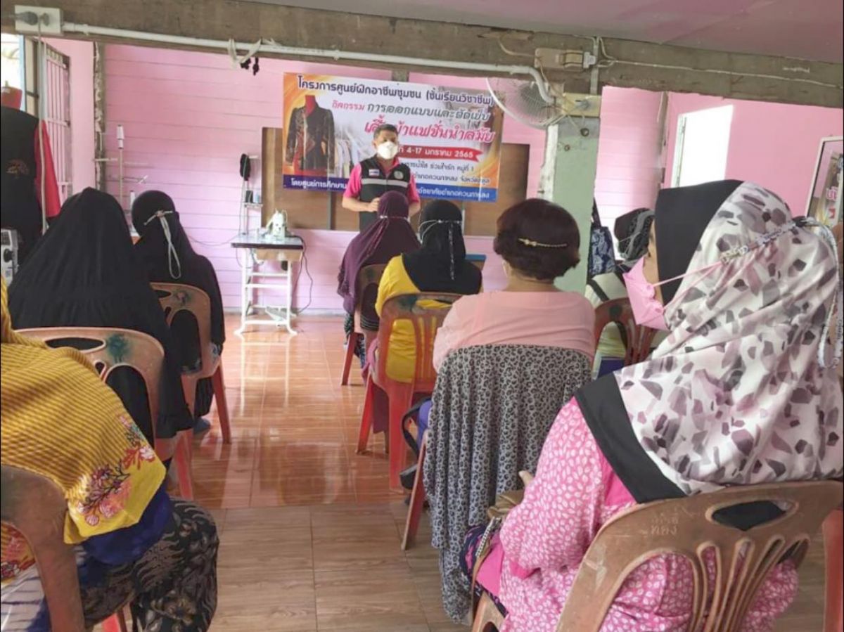 นายทวีศักดิ์ แซ่เจน ครูชำนาญการ รักษาการในตำแหน่งผู้อำนวยการ กศน.อำเภอควนกาหลง กล่าวเปฺิดโครงการศูนย์ฝึกอาชีพชุมชน (ชั้นเรียนวิชาชีพ)กิจกรรมการออกแบบและตัดเย็บเสื้อผ้าแฟชั่นนำสมัย ณ บ้านน้ำดำนอก หมู่ที่ ๑ ตำบลควนกาหลง โดยมีนายสมนึก เตบฮางะครูกศน.ตำบล