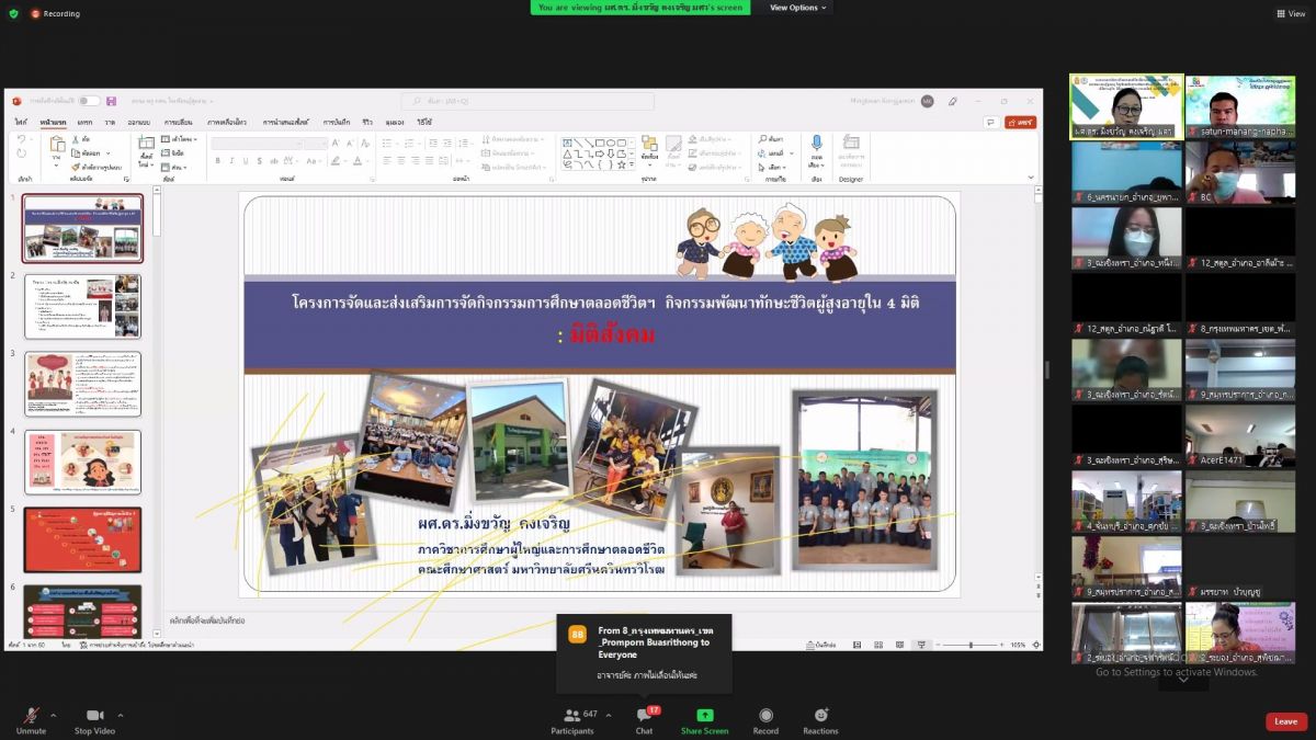 นางสาวจตุพร หารไทย ครูชำนาญการ รักษาการในตำแหน่ง ผู้อำนวยการศูนย์ กศน.อำเภอมะนัง จังหวัดสตูล มอบหมายให้ นายนภัทร จันทวิลาศ ครู กศน. ตำบลนิคมพัฒนา เข้าร่วมการอบรมการจัดการศึกษาตลอดชีวิตเพื่อคงสมรรถนะทางกายจิตและสมองของผู้สูงอายุในรูปแบบกิจกรรมพัฒนาทักษะชีวิตใน 4 มิติ รุ่นที่ 4 (มิติเศรษฐกิจ มิติสุขภาพ มิติสภาพแวดล้อมและมิติสังคม)ณ กศน. อำเภอมะนัง จังหวัดสตูล