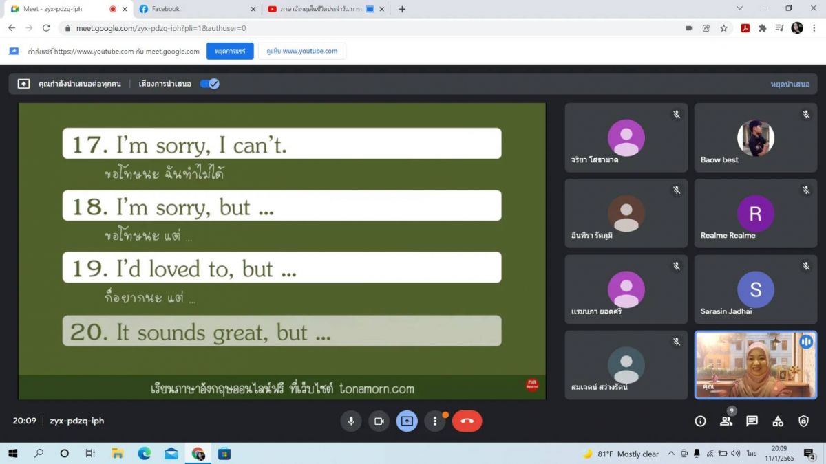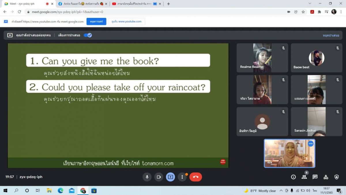 กศน.อำเภอทุ่งหว้า จัดกระบวนการเรียนรู้ขั้นพื้นฐาน กลุ่มธารปลิว รายวิชาภาษาอังกฤษเพื่อชีวิตและสังคม แบบ Online ผ่าน Google meet