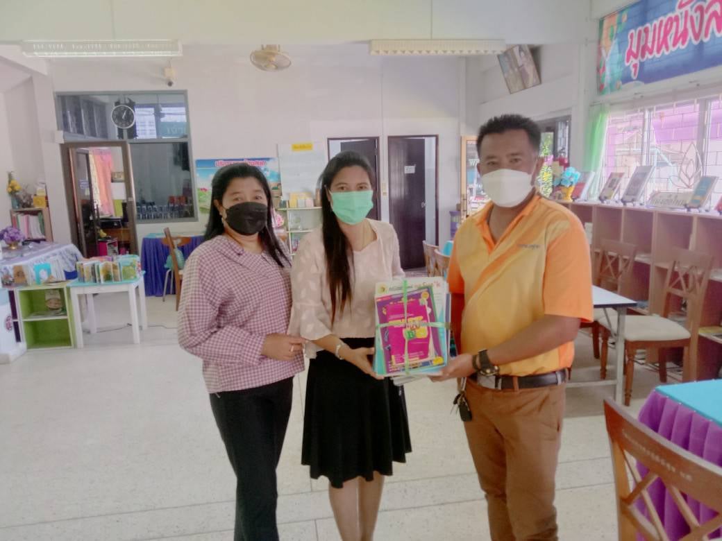 มอบหนังสือให้กับนายสมบูลย์ คอยอาสา ครูอาสาฯ เพื่อนำไปให้บริการ ส่งเสริมการอ่านบ้านหนังสือชุมชนตามพื้นที่ที่รับผิดชอบ