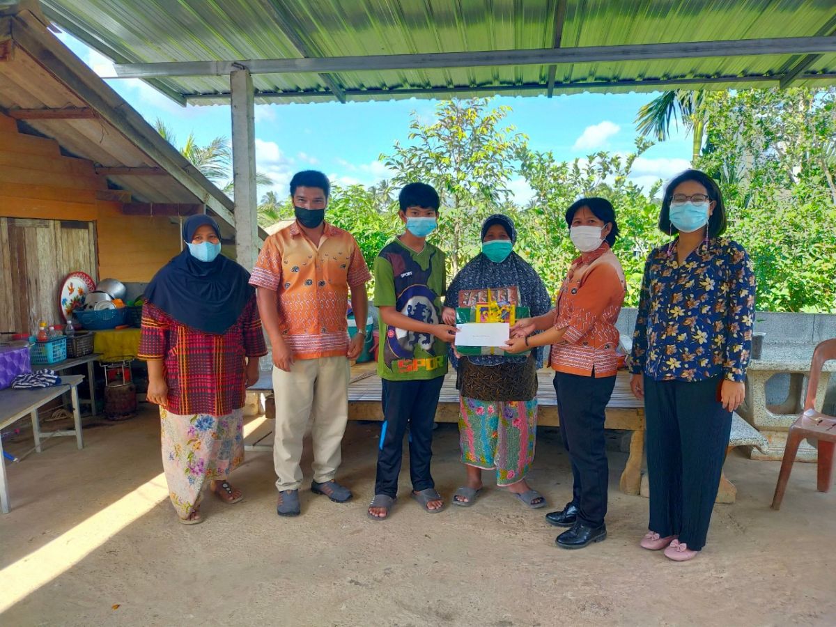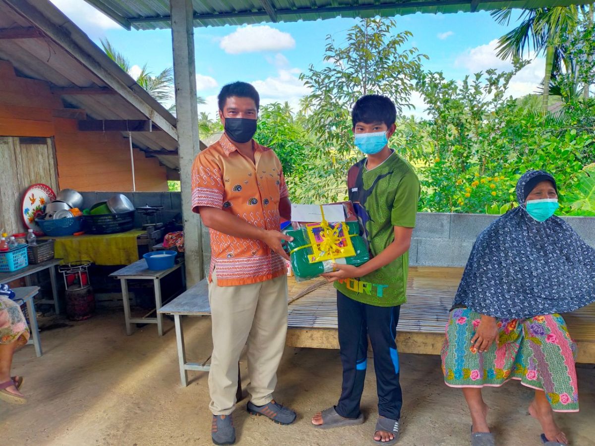 นางเนาวรัตน์ ศรีหมั่น ครู ชำนาญการ รักษาการในตำแหน่งผู้อำนวยการ กศน.อำเภอควนโดน จังหวัดสตูล พร้อมด้วยบุคลากรและนายอนันต์ ลัสมาน ครูอาสาสมัคร กศน.ตำบลควนโดน ได้มอบของขวัญแบ่งปันรอยยิ้ม เพื่อสนับสนุนให้กับนักศึกษา กศน.เนื่องในวันเด็กแห่งชาติ 2565 ณ ตำบลควนโดน อำเภอควนโดน จังหวัดสตูล