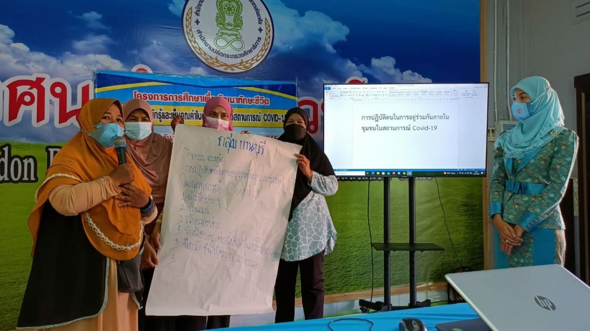 นางวนิดา รักเมือง ครู กศน.ตำบลวังประจัน ได้รับมอบหมาย จากนางเนารัตน์ ศรีหมั่น ครูชำนาญการ รักษาการ ในตำแหน่ง ผู้อำนวยการ กศน.อำเภอควนโดน จัดโครงการการศึกษาเพื่อพัฒนาทักษะชีวิต กิจกรรมตระหนักรู้และเห็นคุณค่าในตนเองในช่วงสถานการณ์ COVID-19 เพื่อให้ผู้เข้าร่วมโครงการตระหนักรู้และเห็นคุณค่าในตนเอง ในด้านเจตคติและทักษะที่จำเป็น สามารถนำความรู้ที่ได้รับไปปรับใช้ในการดำเนินชีวิตของตนเองในช่วงสถานการณ์ COVID-19 ได้ โดยมีผู้เข้าร่วมโครงการจำนวน 6 คน ณ กศน.อำเภอควนโดน หมู่ที่ 1 อำเภอควนโดน จังหวัดสตูล โดยมีนายจักรกฤษณ์ พิชัยรัตน์ ตำแหน่ง นักวิชาการสาธารณสุขชำนาญการ โรงพยาบาลควนโดน เป็นวิทยากรให้ความรู้ การดำเนินกิจกรรมในครั้งนี้เป็นไปตามมาตรการป้องกันการแพร่ระบาดของโรคติดเชื้อไวรัสโคโรนา 2019 อย่างเคร่งครัด