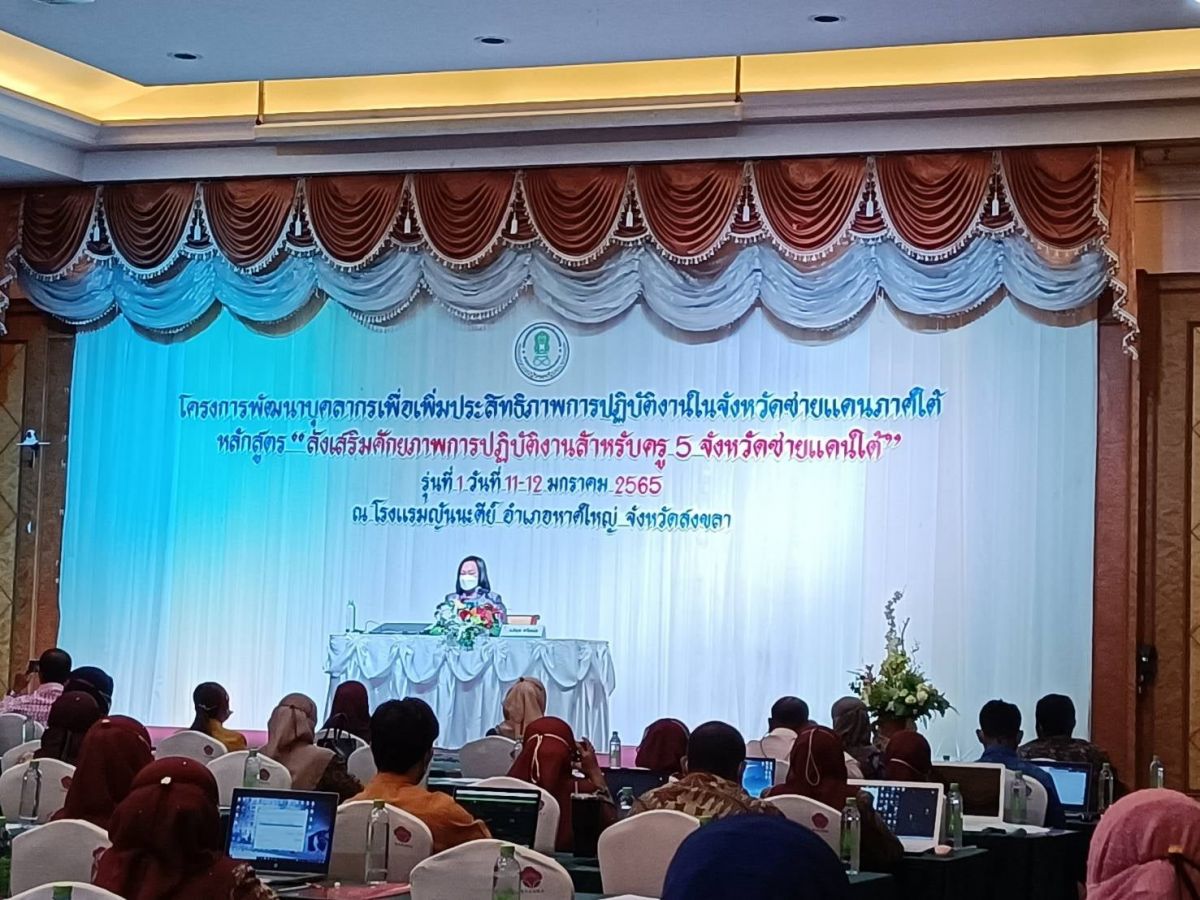 ครูอาสาสมัครฯประจำสถาบันศึกษาปอเนาะ เข้าร่วมโครงการพัฒนาบุคลากรเพื่อเพิ่มประสิทธิภาพการปฏิบัติงานในจังหวัดชายแดนภาคใต้ หลักสูตรส่งเสริมศักยภาพการปฏิบัติงานสำหรับครู กศน. 5 จังหวัดชายแดนภาคใต้ รุ่นที่ ๑ ประจำปีงบประมาณ พ.ศ.2565