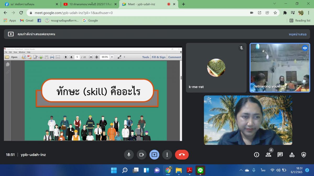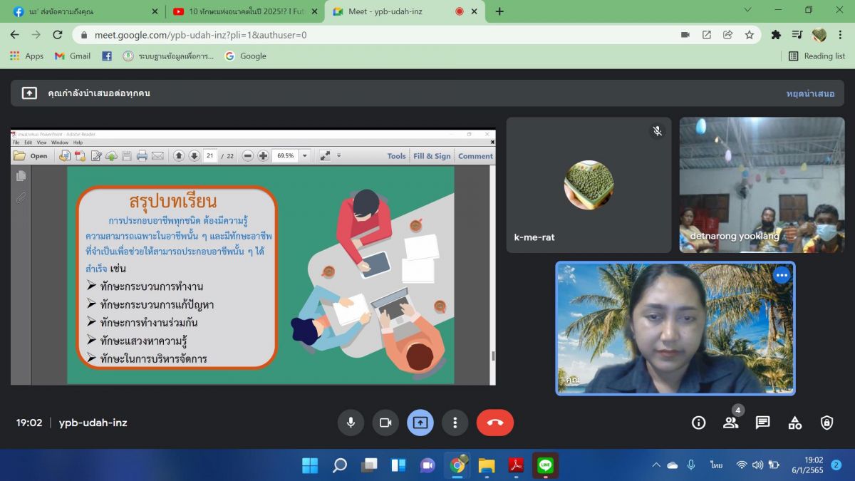 6 มกราคม 2565 นางสาววิภานันท์ พุทธนุกูล ผู้อำนวยการศูนย์ กศน.อำเภอเมืองสตูล มอบหมายให้ นางสาวรัตนาภรณ์ สมพงศ์ ครู อาสาฯตำบลเกาะสาหร่าย จัดกิจกรรมการเรียนการสอน กระบวนการเรียนรู้ออนไลน์ผ่าน google meet ให้กับนักศึกษาระดับประถมศึกษา ประจำภาคเรียนที่ 2 ปีการศึกษา 2564 ภายใต้การควบคุมการแพร่ระบาดเชื้อไวรัสโคโรนา 2019