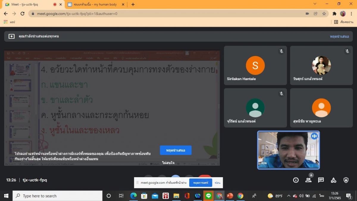 7 มกราคม 2565 นางสาววิภานันท์ พุทธนุกูล ผู้อำนวยการศูนย์ กศน.อำเภอเมืองสตูล มอบหมายให้ นายประภากร ผดุงตระกูล ครู อาสาฯตำบลตันหยงโป จัดกิจกรรมการเรียนการสอน กระบวนการเรียนรู้ออนไลน์ผ่าน google meet ให้กับนักศึกษาระดับมัธยมศึกษาตอนปลาย ประจำภาคเรียนที่ 2 ปีการศึกษา 2564 ภายใต้การควบคุมการแพร่ระบาดเชื้อไวรัสโคโรนา 2019