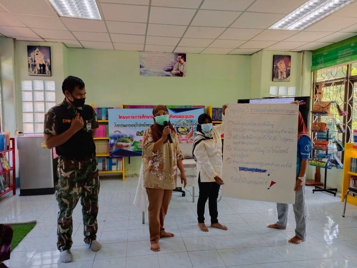 นางวนิดา รักเมือง ครู กศน.ตำบลวังประจัน ได้รับมอบหมาย จากนางเนารัตน์ ศรีหมั่น ครูชำนาญการ รักษาการ ในตำแหน่ง ผู้อำนวยการ กศน.อำเภอควนโดน จัดโครงการการศึกษาเพื่อพัฒนาสังคมและชุมชน กิจกรรมอนุรักษ์พลังงานและทรัพยากรธรรมชาติและสิ่งแวดล้อม โดยมีวัตถุประสงค์จัดกระบวนการส่งเสริมให้กลุ่มเป้าหมายมีส่วนร่วมในการอนุรักษ์ พัฒนาสังคมและชุมชน ฝึกความรับผิดชอบต่อส่วนร่วมและสามารถปฏิบัติตนจนเป็นนิสัยที่ดีและขยายผลไปสู่สังคมได้ โดยมีผู้เข้าร่วมโครงการ จำนวน 6 คน ณ กศน.ตำบลควนสตอหมู่ที่ 10 ตำบลควนสตอ อำเภอควนโดน จังหวัดสตูล โดยมีนายอับดุลอาสีด อำมาลี ตำแหน่งเจ้าหน้าที่พิทักษ์ป่า ร่วมเป็นวิทยากรให้ความรู้ การดำเนินกิจกรรมในครั้งนี้เป็นไปตามมาตรการป้องกันการแพร่ระบาดของโรคติดเชื้อไวรัสโคโรนา 2019 อย่างเคร่งครัด