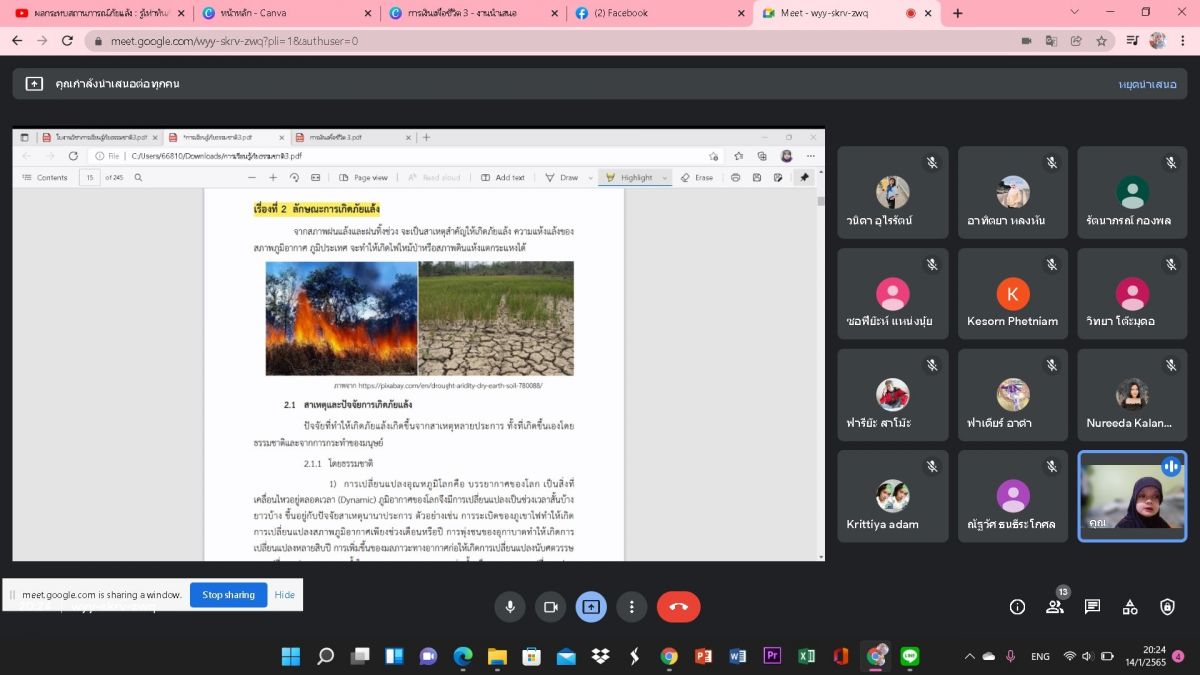 14 มกราคม 2565 นางสาววิภานันท์ พุทธนุกูล ผู้อำนวยการศูนย์ กศน.อำเภอเมืองสตูล มอบหมายให้นางสาวมีนา เหล่ทองคำ ครู กศน.ตำบลเกตรี จัดกิจกรรมการเรียนการสอนรูปแบบออนไลน์ผ่าน google meet ให้กับนักศึกษาระดับมัธยมศึกษาตอนปลาย ประจำภาคเรียนที่ 2 ปีการศึกษา 2564 ภายใต้การควบคุมการแพร่ระบาดเชื้อไวรัสโคโรนา 2019