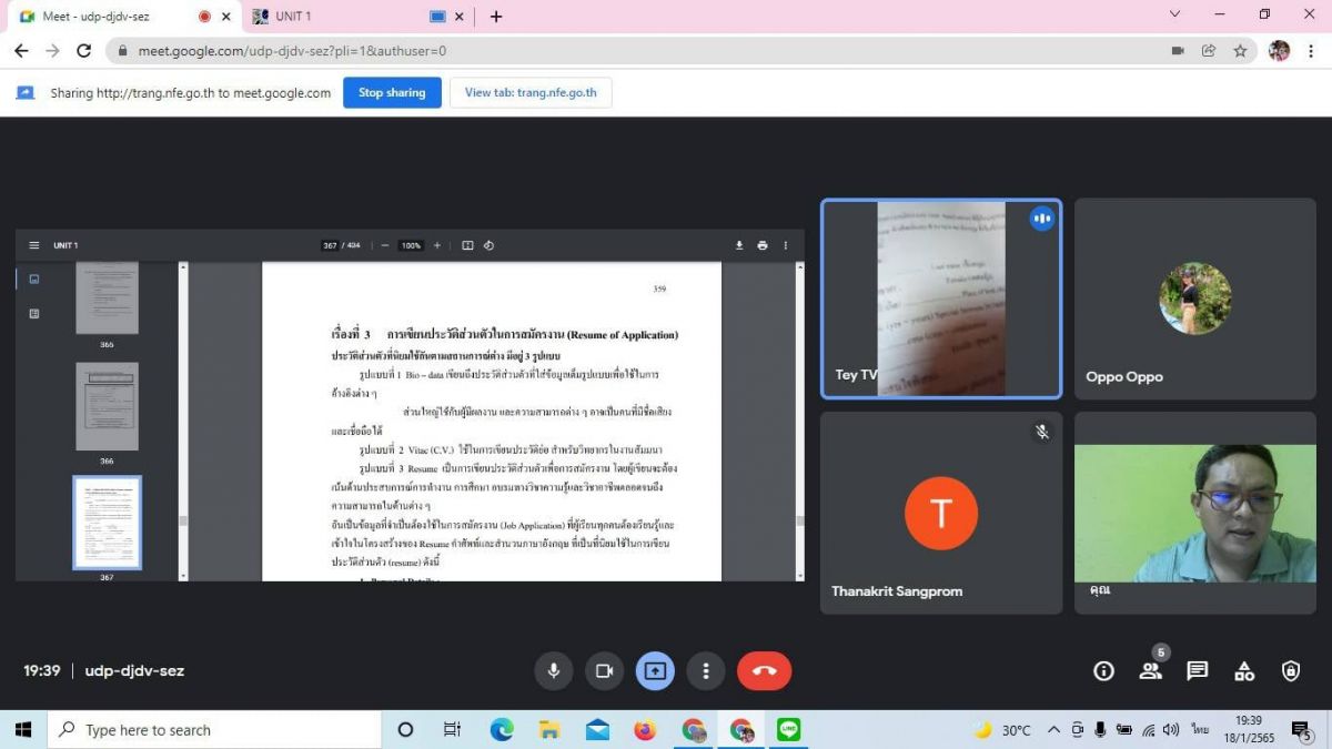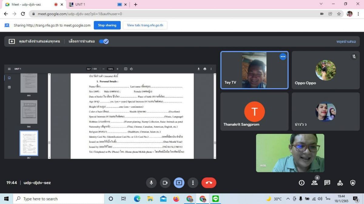 กศน.อำเภอทุ่งหว้า พบกลุ่มออนไลน์ กลุ่มถ้ำเลสเตโกดอน วิชาภาษาอังกฤษเพื่อชีวิตและสังคม ม.ปลาย