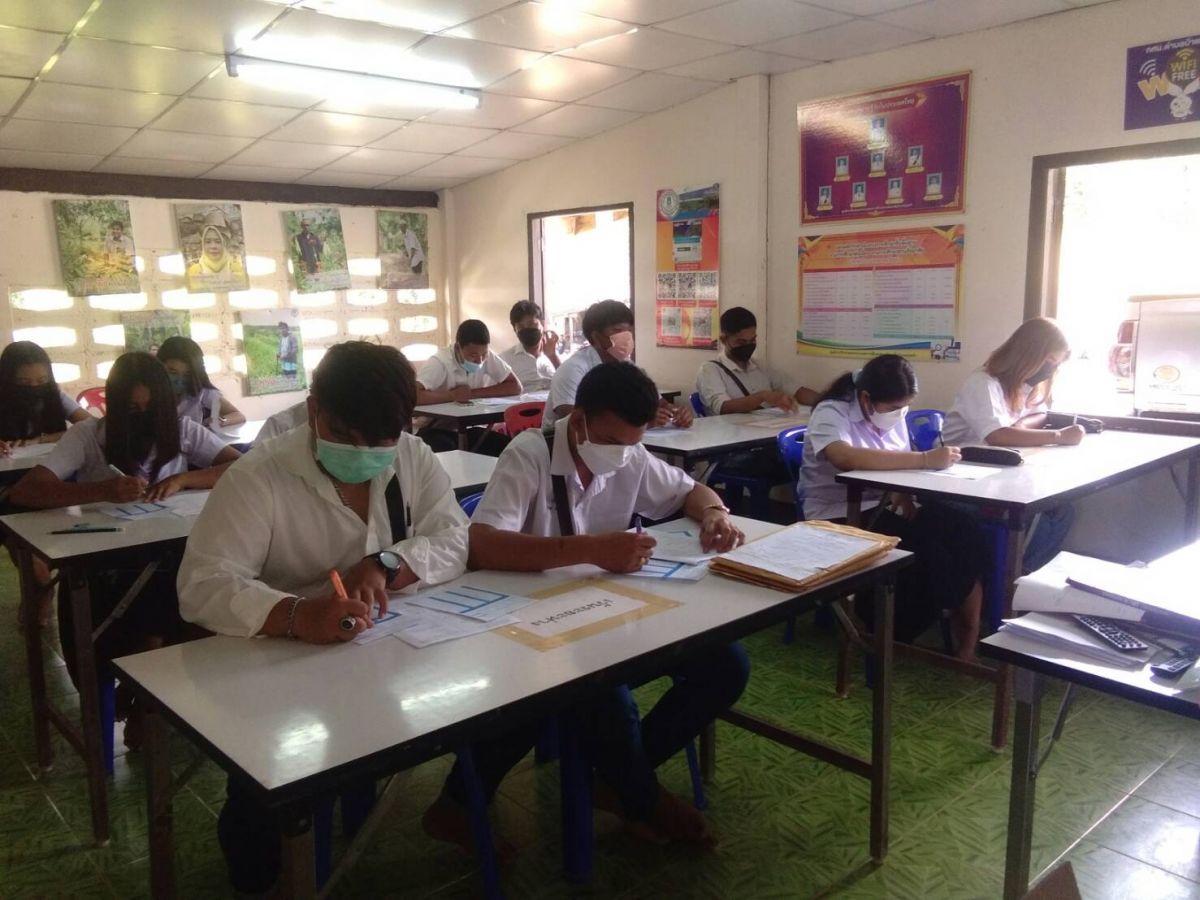 กศน.ตำบลป่าแก่บ่อหิน อำเภอทุ่งหว้า ดำเนินการจัดสอบกลางภาคเรียนที่2/2564 ให้กับนักศึกษา ระดับ ม.ต้น กลุ่มคลองห้วยบ่า