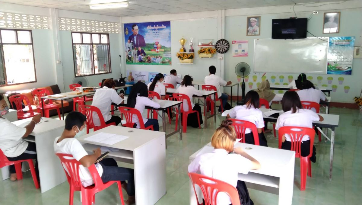 กศน.ตำบลทุ่งบุหลัง อำเภอทุ่งหว้า ดำเนินการจัดสอบกลางภาคเรียนที่2/2564 ให้กับนักศึกษาระดับ ม.ต้น กลุ่มทุ่งทะนานทอง
