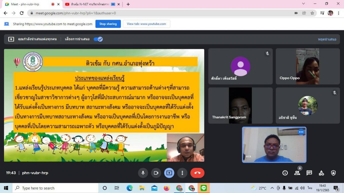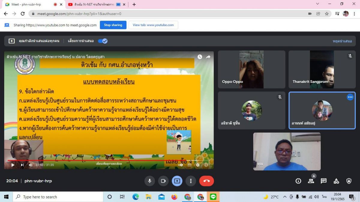 กศฯ.อำเภอทุ่งหว้า ดำเนินการติวเข้มN-NET รายวิชาทักษะการเรียนรู้ เรื่องการใช้แหล่งเรียนรู้ ม.ปลาย กลุ่มถ้ำเลสเตโกดอน ด้วยระบบ Google Meet