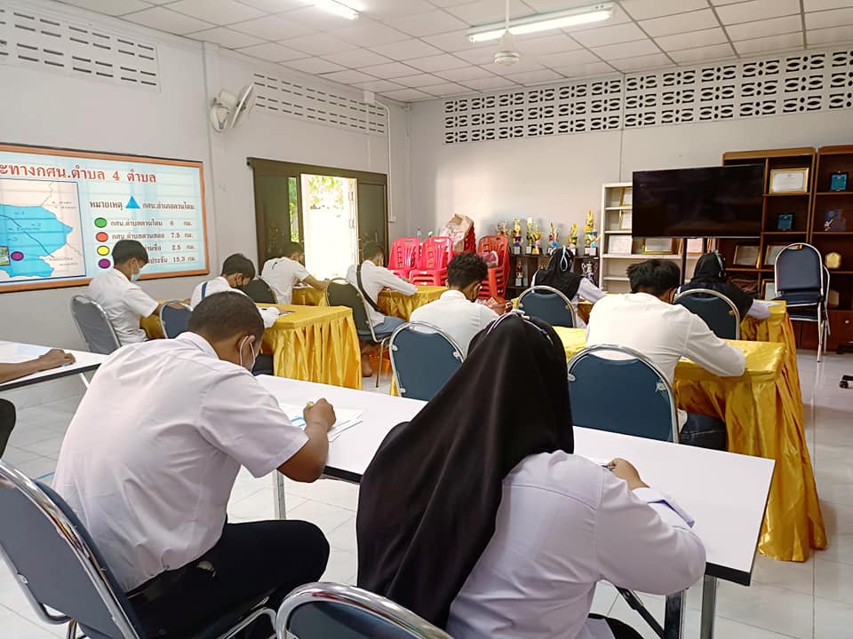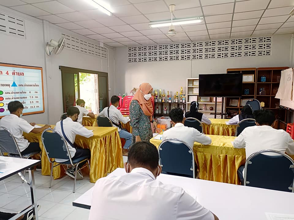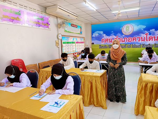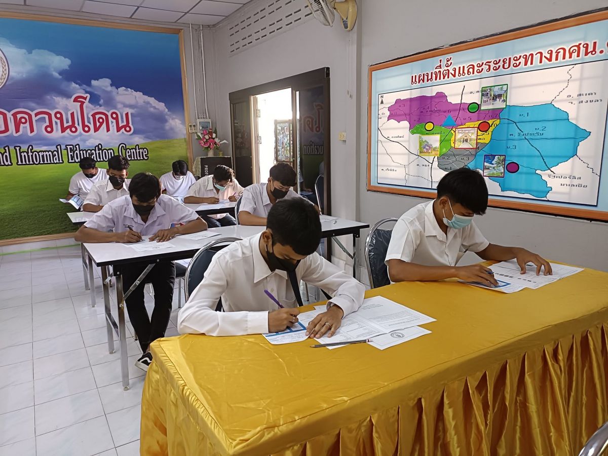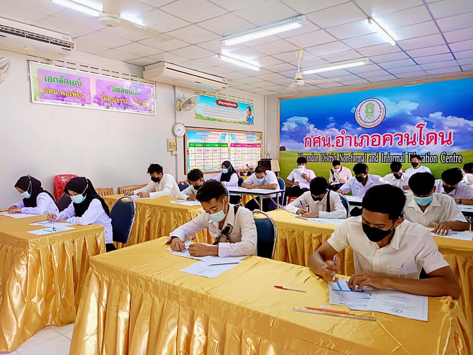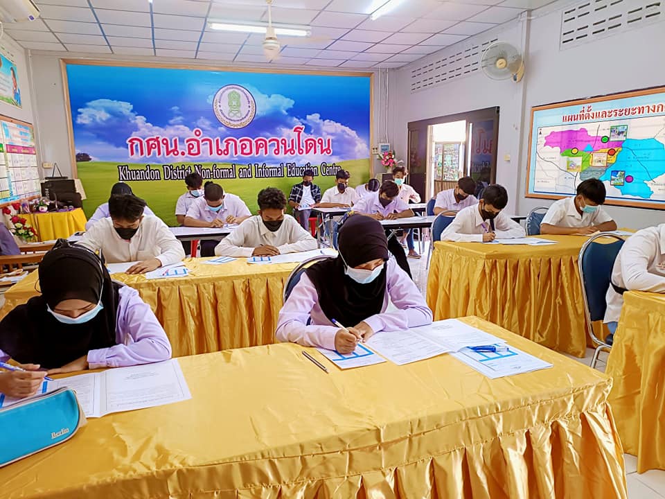 นางสาวนุรวาตี หมัดสกุล ครู กศน.ตำบลย่านซื่อ ได้รับมอบหมายจากนางเนาวรัตน์ ศรีหมั่นครู ชำนาญการ รักษาการในตำแหน่ง ผอ.กศน.อำเภอควนโดน ดำเนินการจัดสอบกลางภาคเรียนให้กับนักศึกษา ระดับ ม.ปลาย ประจำภาคเรียนที่ 2 ปีการศึกษา 2564 ภายใต้การควบคุมการแพร่ระบาดเชื้อไวรัสโคโรนา 2019 ณ กศน.อำเภอควนโดน อำเภอควนโดน จังหวัดสตูล