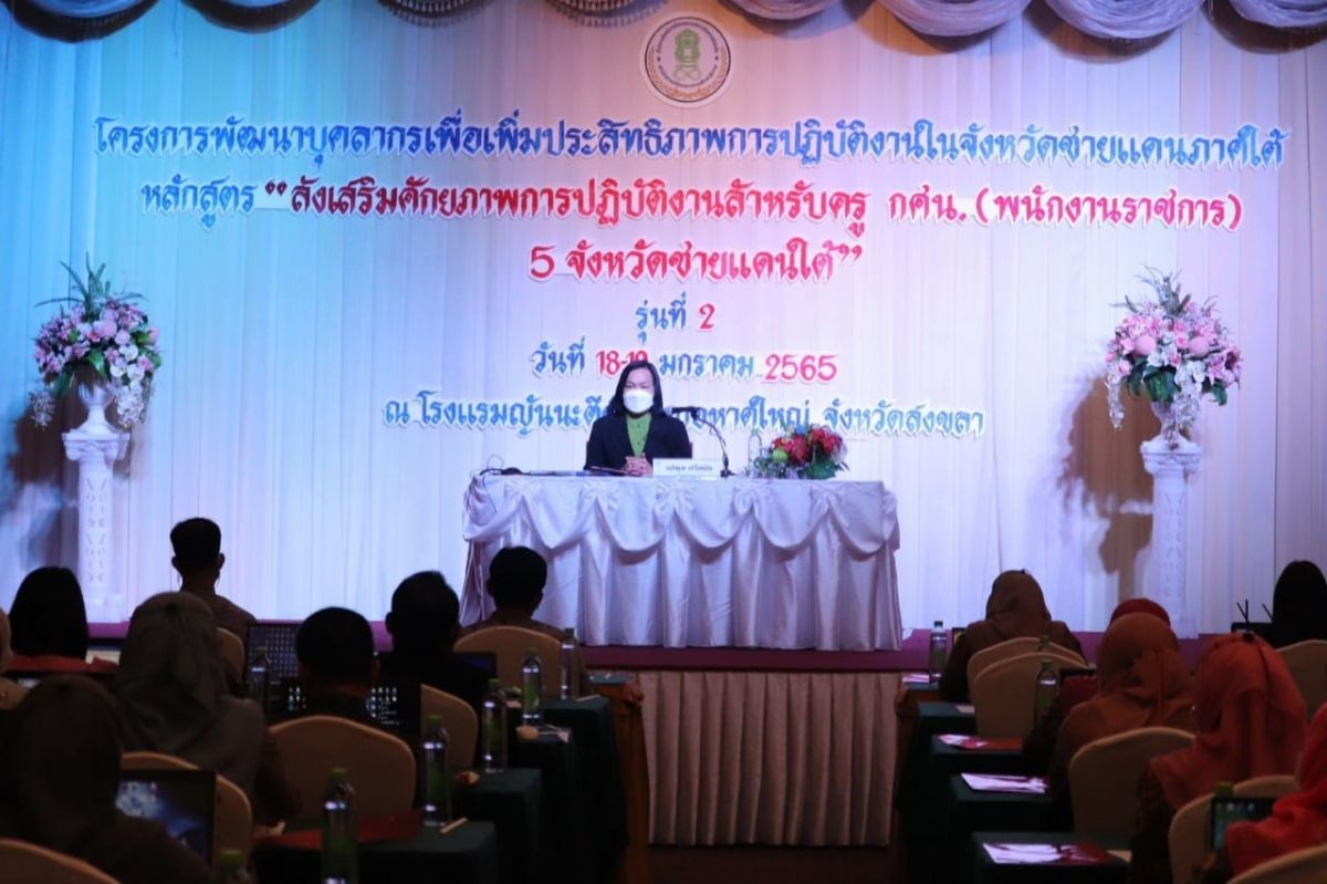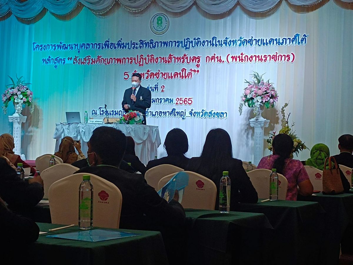 นางสาวนุรวาตี หมัดสกุล ครู กศน.ตำบลย่านซื่อ ได้รับมอบหมาย จากนางเนารัตน์ ศรีหมั่น ครูชำนาญการ รักษาการ ในตำแหน่ง ผู้อำนวยการ กศน.อำเภอควนโดน เข้าร่วมโครงการพัฒนาบุคลากรเพื่อเพิ่มประสิทธิภาพการปฏิบัติงานในจังหวัดชายแดนภาคใต้ หลักสูตร ส่งเสริมศักยภาพสำหรับครู กศน. (พนักงานราชการ) 5 จังหวัดชายแดนภาคใต้ รุ่นที่ 2 ระหว่างวันที่ 18 - 19 มกราคม 2565 จัดโดยสถาบัน กศน. ภาคใต้ ณ โรงแรมญันนะตีย์ อำเภอหาดใหญ่ จังหวัดสงขลา