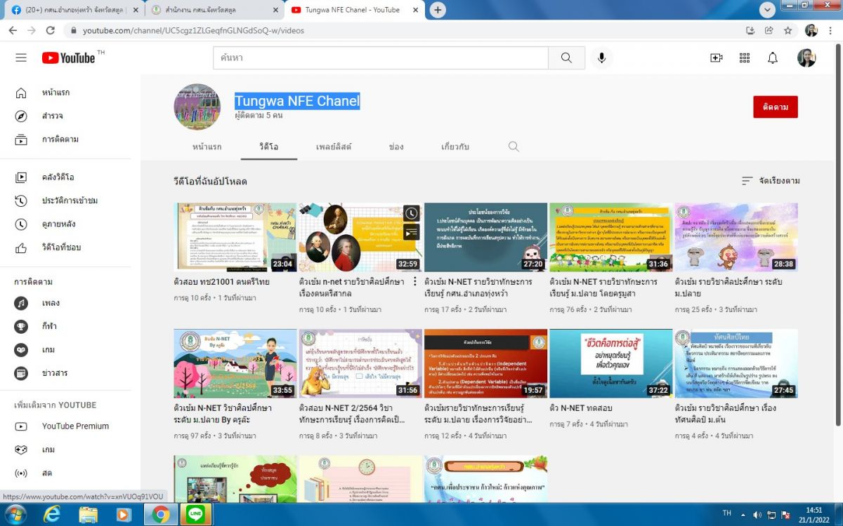 กศน.อำเภอทุ่งหว้า รวบรวมสื่อ คลิปติวสอบ N-Net ผ่านช่องทาง ยูทูป Tungwa NFE Chanel