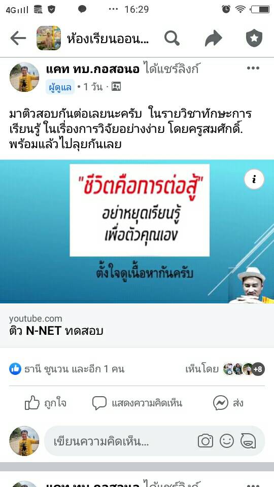 กศน.อำเภอทุ่งหว้า ดำเนินการ ติวสอบ N-Net รายวิชา ทักษะการเรียนรู้ ระดับ ม.ต้น ผ่านกลุ่มไลน์