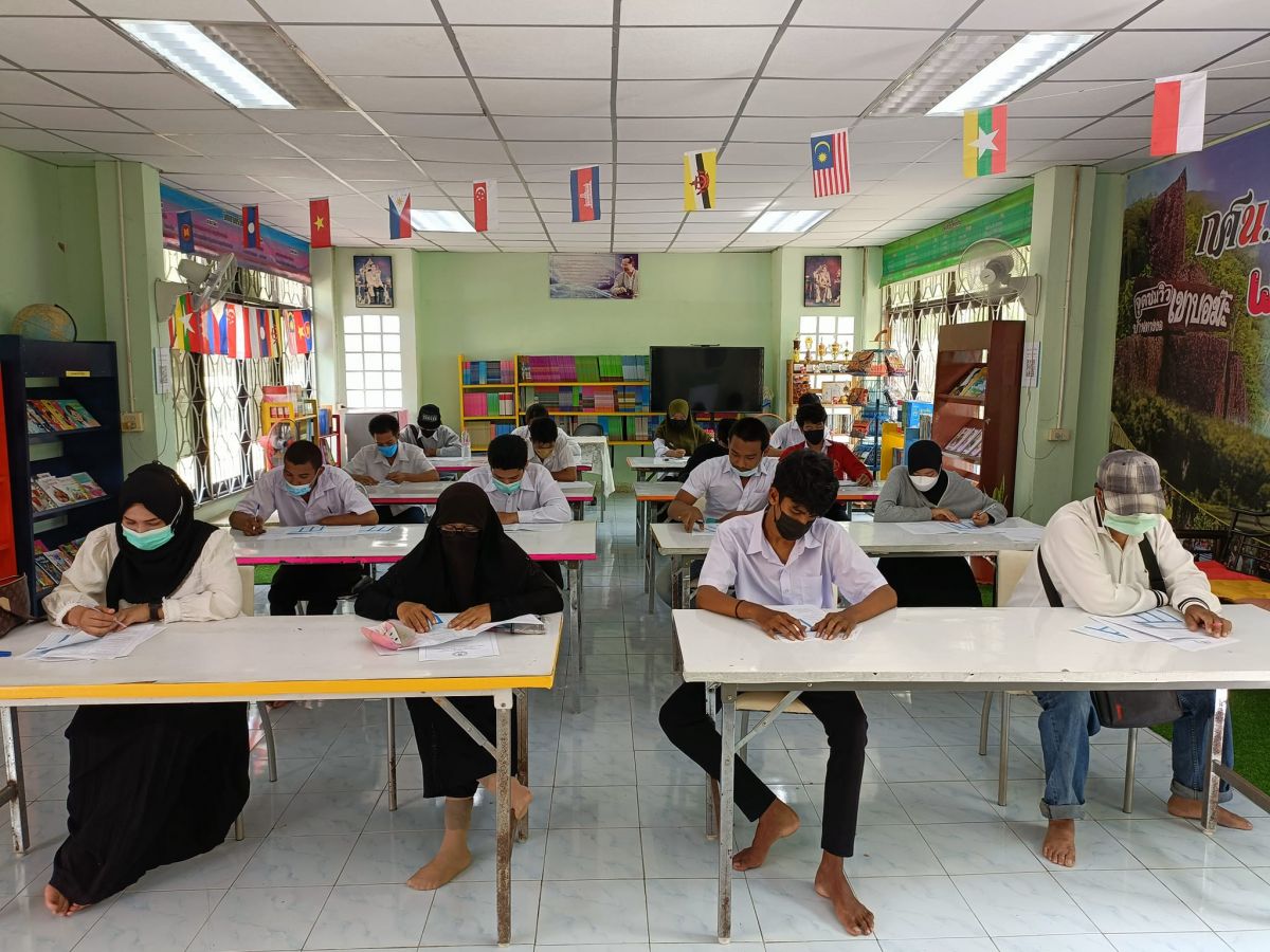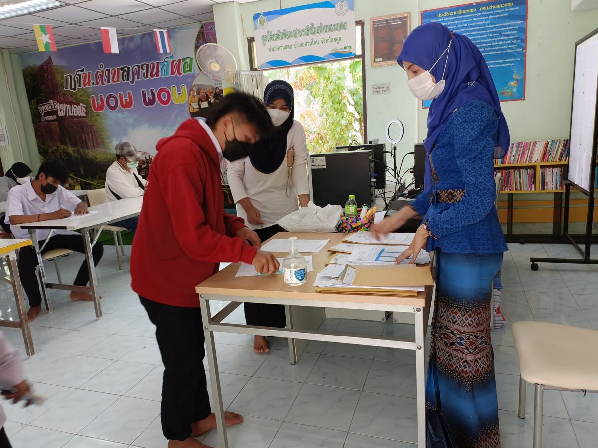 นางสาวสุนีย์ ไมมะหาด ครู กศน.ตำบลควนสตอ ได้รับมอบหมายจากนางเนาวรัตน์ ศรีหมั่นครู ชำนาญการ รักษาการในตำแหน่ง ผอ.กศน.อำเภอควนโดน ดำเนินการจัดสอบกลางภาคเรียนให้กับนักศึกษา ระดับ ม.ปลาย ประจำภาคเรียนที่ 2 ปีการศึกษา 2564 ภายใต้การควบคุมการแพร่ระบาดเชื้อไวรัสโคโรนา 2019 ณ กศน.ตำบลควนสตอ อำเภอควนโดน จังหวัดสตูล