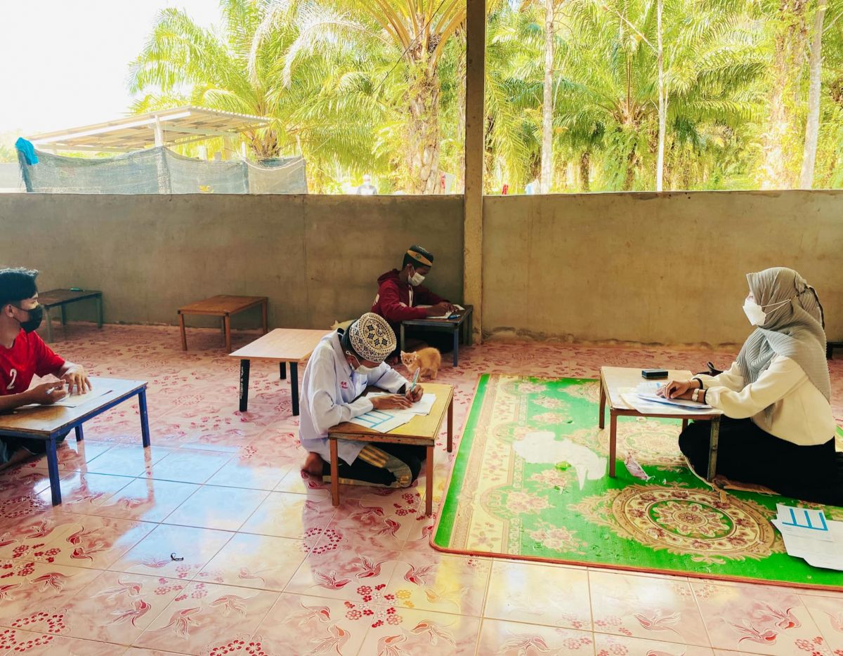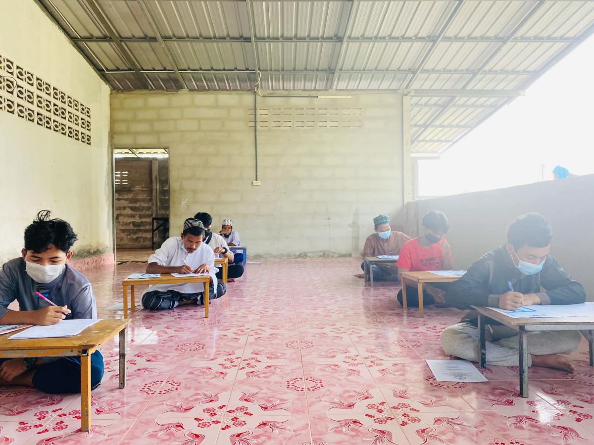 นาวสาวอาฟีฟา อาลีมิง ครูอาสาสมัครฯ ประจำสถาบันศึกษาปอเนาะ ได้รับมอบหมาย จากนางเนาวรัตน์ ศรีหมั่น ครู ชำนาญการ รักษาการในตำแหน่ง ผู้อำนวยการ กศน.อำเภอควนโดน จังหวัดสตูล ดำเนินจัดการสอบกลางภาคให้กับนักศึกษา ระดับมัธยมศึกษาตอนต้น ประจำภาคเรียนที่ 2 ปีการศึกษา 2564 โดยกระบวนการดำเนินการจัดการสอบเป็นไปตามแนวปฏิบัติการควบคุมและป้องกันการแพร่ระบาดของโรคติดเชื้อไวรัสโคโรน่า 2019 ณ สถาบันศึกษาปอเนาะท่องจำอัลกุรอาน อัลฟิรเดาส์ ตำบลควนสตอ อำเภอควนโดน จังหวัดสตูล