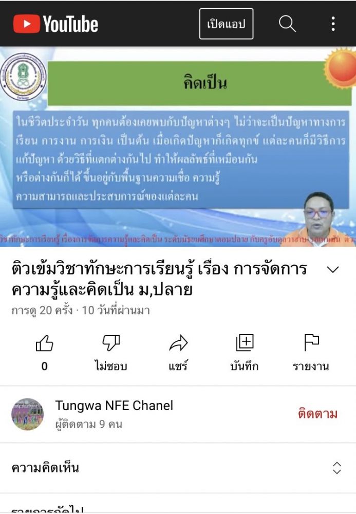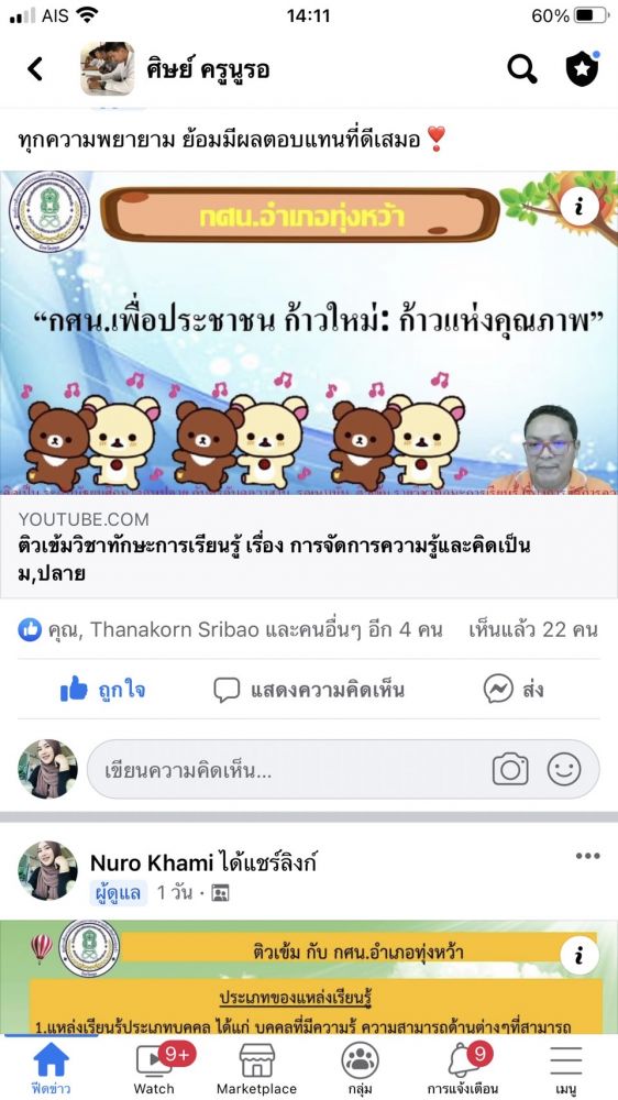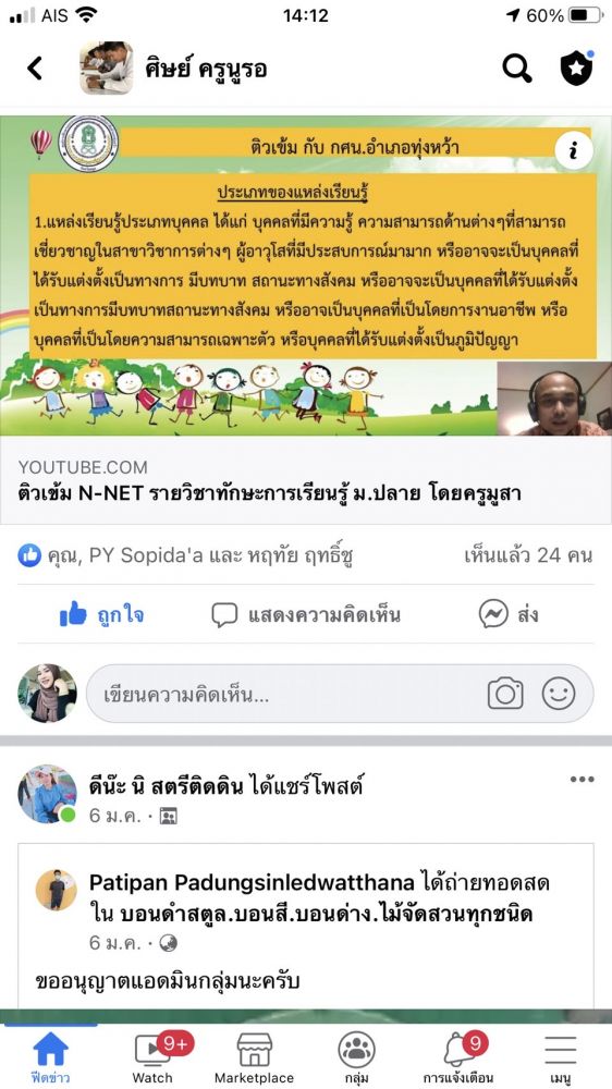 นายอาดำ ลิงาลาห์ ผู้อำนวยการศูนย์ กศน.อำเภอทุ่งหว้า จังหวัดสตูล มอบหมายให้นางสาวนูรอ คามิ ครูกศน.ตำบล ติว N-net นักศึกษา ม.ปลาย ผ่านกลุ่มเฟสบุค