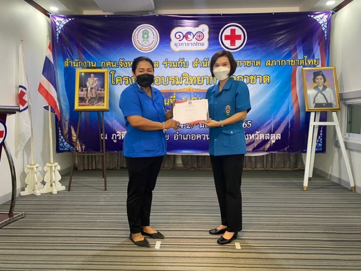 นางสาวจตุพร ทหารไทย ครูชำนาญการ รักษาการในตำแหน่ง ผู้อำนวยการศูนย์ กศน.อำเภอมะนัง มอบหมายให้บุคลากร กศน.อำเภอมะนัง ร่วมพิธีปิดโครงการอบรมวิทยากรยุวกาชาด รุ่นที่ 167/สต.1 ระหว่างวันที่ 24-27 มกราคม 2565 ณ ภูริศึกษาวิชชาลัย อำเภอควนกาหลง จังหวัดสตูล