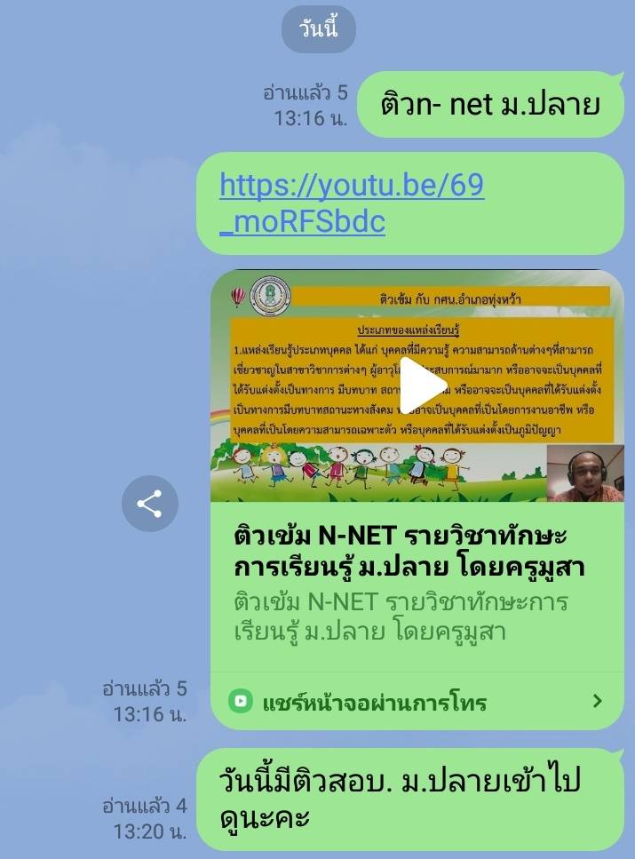 กศน.อำเภอทุ่งหว้า ดำเนินการ ติว n-net ระดับชั้น ม.ปลาย รายวิชา ทักษะการเรียนรู้ onlineโดยผ่านกลุ่ม Line.และ facsbookให้นักศึกษาได้เรียนรู้และเตรียมตัวก่อนสอบ