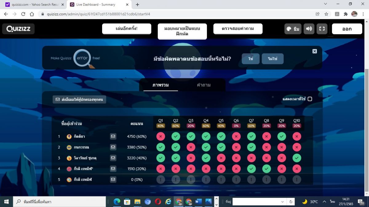 กศน.อำเภอทุ่งหว้า จัดกระบวนการเรียนรู้ผ่านระบบออนไลน์ Google meet และสื่อ You tube ในรายวิชาศิลปศึกษา ระดับมัธยมศึกษาตอนปลาย และ ทดสอบผ่าน Quizizz