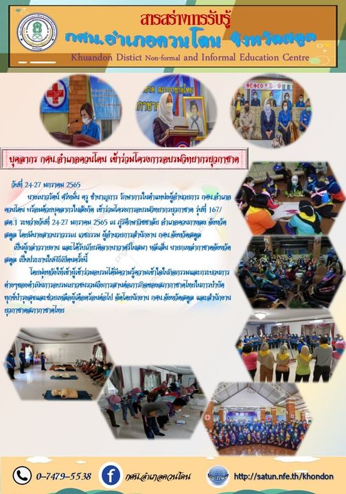 สารสร้างการรับรู้ บุคลากร กศน.อำเภอควนโดน จังหวัดสตูล เข้าร่วมโครงการอบรมวิทยากรยุวกาชาด
