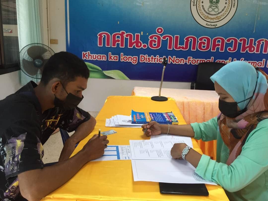นายทวีศักดิ์ แซ่เจน ครูชำนาญการ รักษาการในตำแหน่งผู้อำนวยการศูนย์ กศน.อำเภอควนกาหลง มอบหมายให้นางสาวปริณดา สอนทอง ครูผู้สอนนศ.คนพิการ ดำเนินการสอบกลางภาคเรียนที่๒/๒๕๖๔ นศ.คนพิการระดับม.ต้น ณ พื้นที่ตำบลควนกาหลง อำเภอควนกาหลง จังหวัดสตูลโดยกระบวนการดำเนินกิจกรรมเป็นไปตามแนวปฏิบัติการควบคุมและป้องกันการแพร่ระบาดของโรคติดเชื้อไวรัสโคโรน่า ๒๐๑๙ อย่างเคร่งครัด