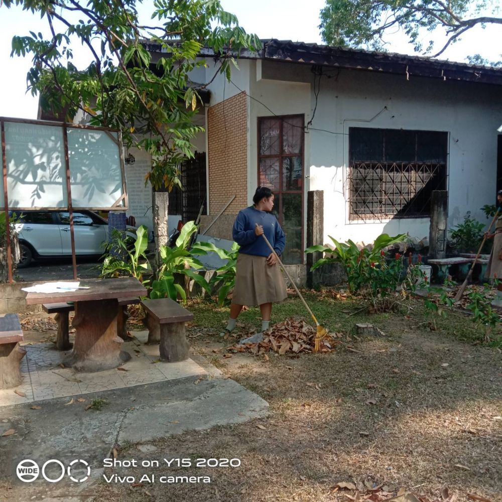 กิจกรรมที่ 2 ทำความสะอาดบริเวณภายนอกห้องสมุดประชาชนอำเภอละงู โดยการกวาดขยะรอบๆห้องสมุดประชาชนอำเภอละงู